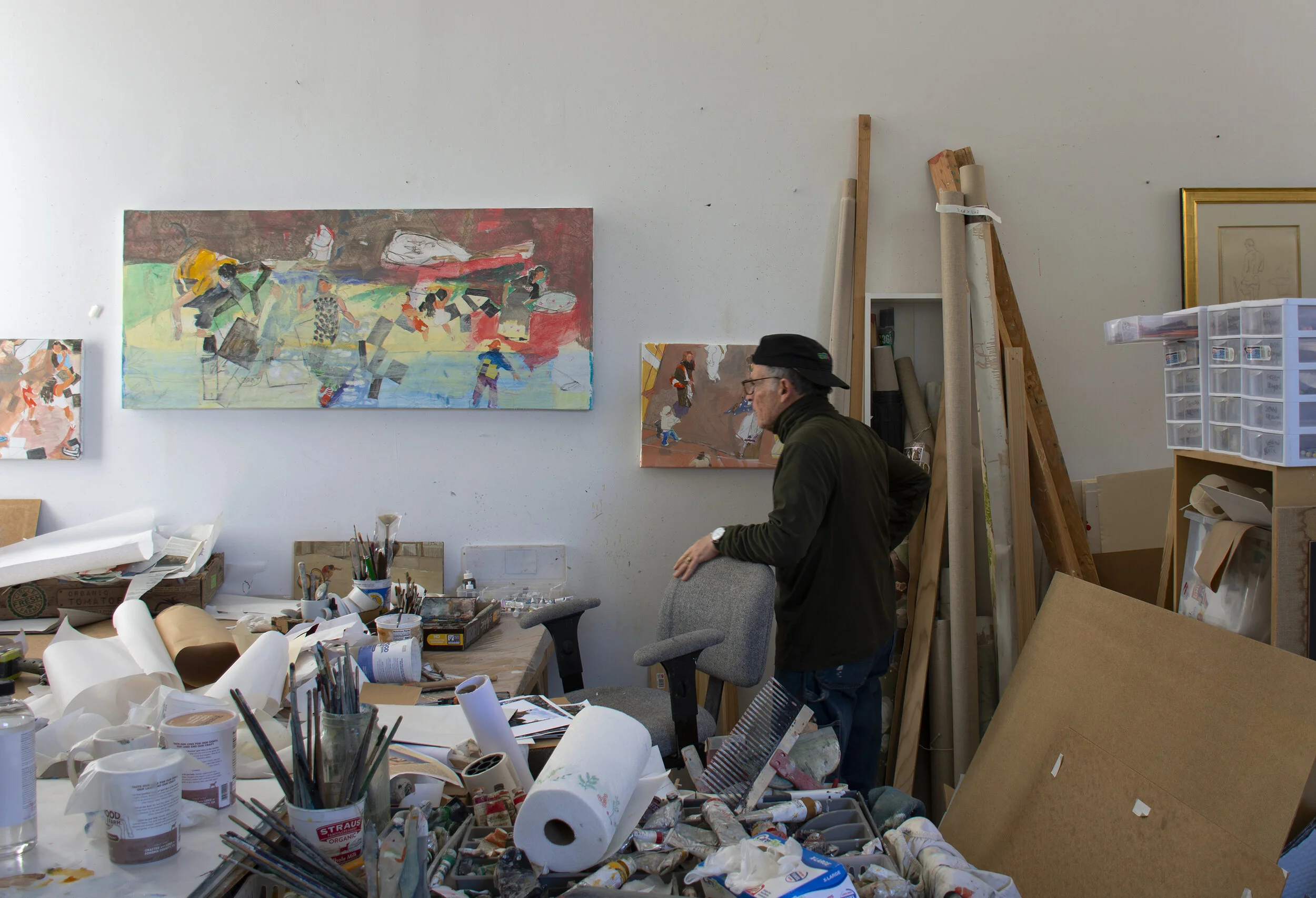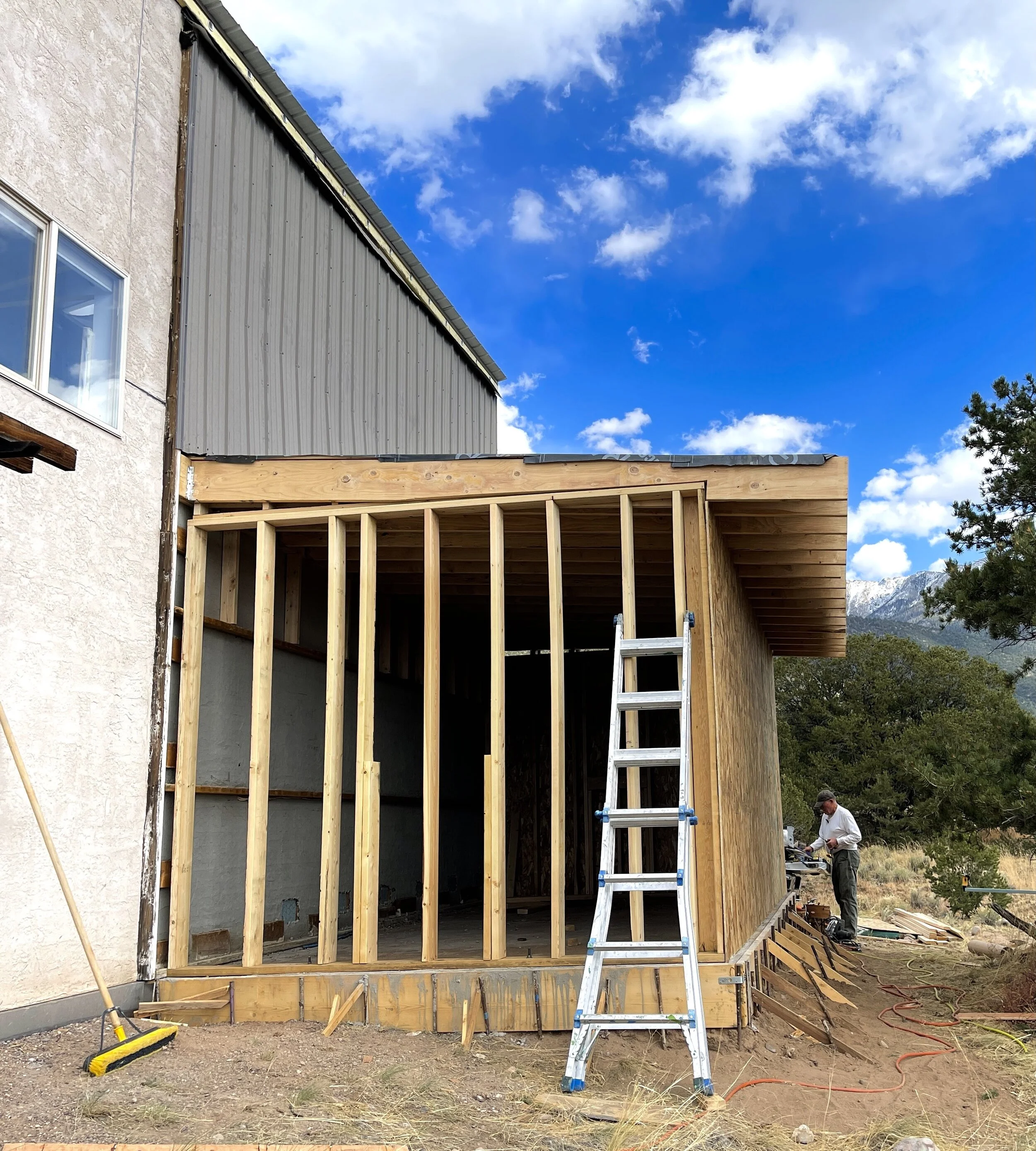 10:31 AM: this morning the construction crew are putting the roof on my new storage space. lots of hammering, sawing and a general ruckus. tomorrow, they’ll be making a door sized hole in the south studio wall. that will create lots of dust & debris. so I proposed they build makeshift little house in the interior south studio wall, around where the door hole will be cut. then I suggested they drape that makeshift house with a tarp, so that all the dust will be contained and not settle all over the studio, potentially covering everything including paintings, brushes, etc. they think it’s a good idea, and will implement it before starting to cut the door.
