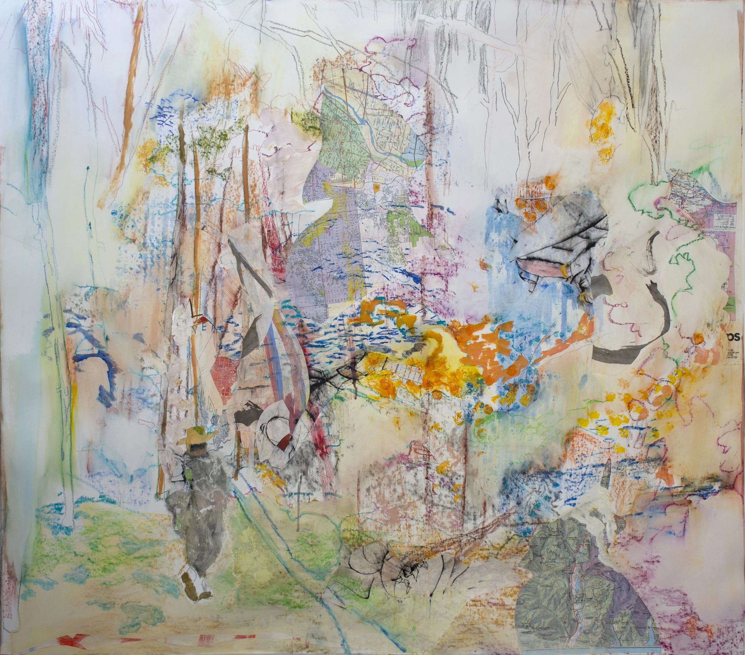 11/26/2021 creek oil/collage at the end of my painting day today, following significant modifications