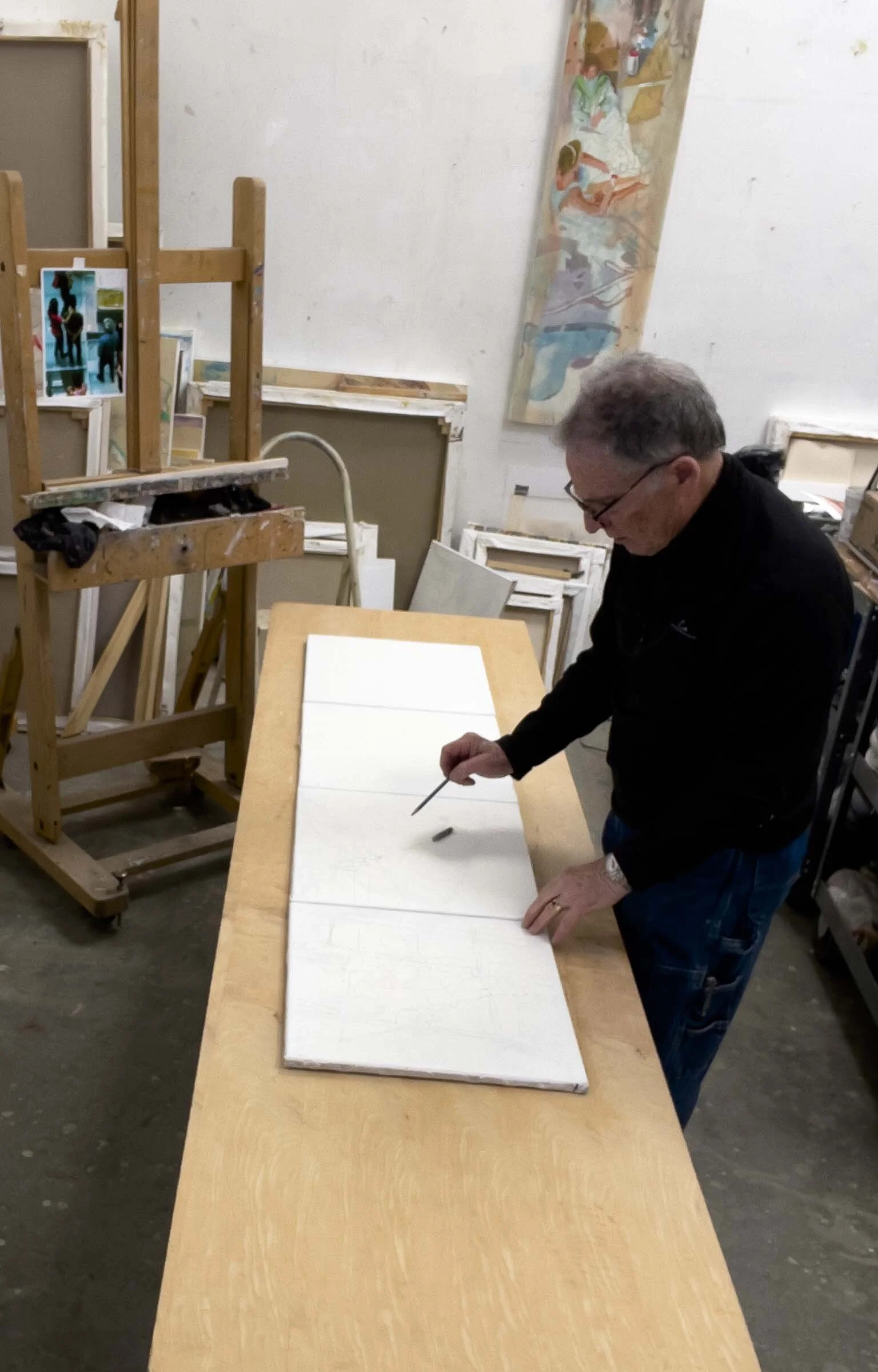 2021 creek oil 9 16x64” (4 canvases) stage 1