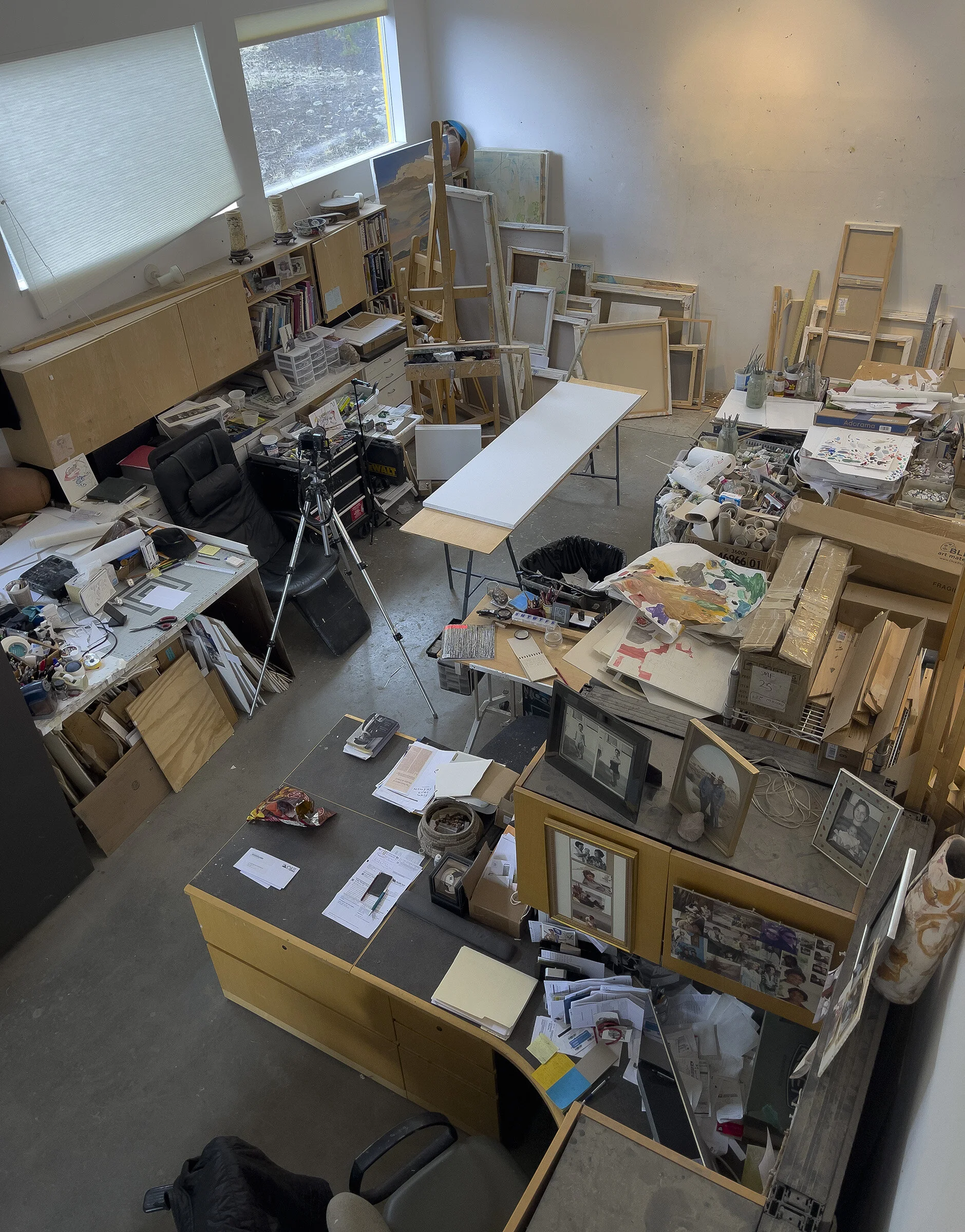 3:28 PM: shall we call this end of day jazzI? if you are a regular, you know this happens almost every day: after cleaning my brushes and preparing to walk out the door & go back to the house, i get a sudden urge to do what could be compared to a jazz riff. i take what i’ve done & riffa bit. enough to make a difference, but completely in tune with what already exists. call it what you will; a riff; a scrumble; a flish…it usually works in that it gives more poetic meaning to what happened earlir and, in this case, introduces a new color: blue.