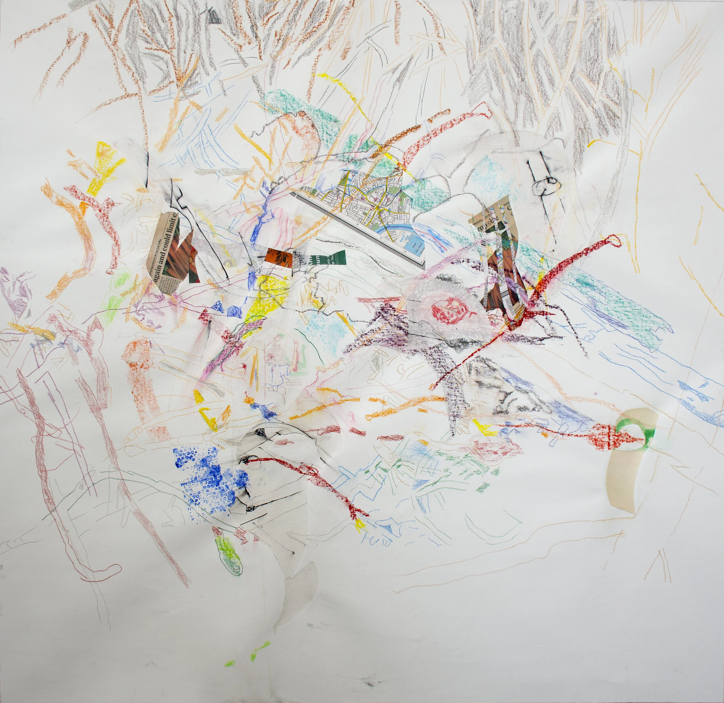 6/24/2021 creek drawing/collage 49.5x49.5in. at 3pm today