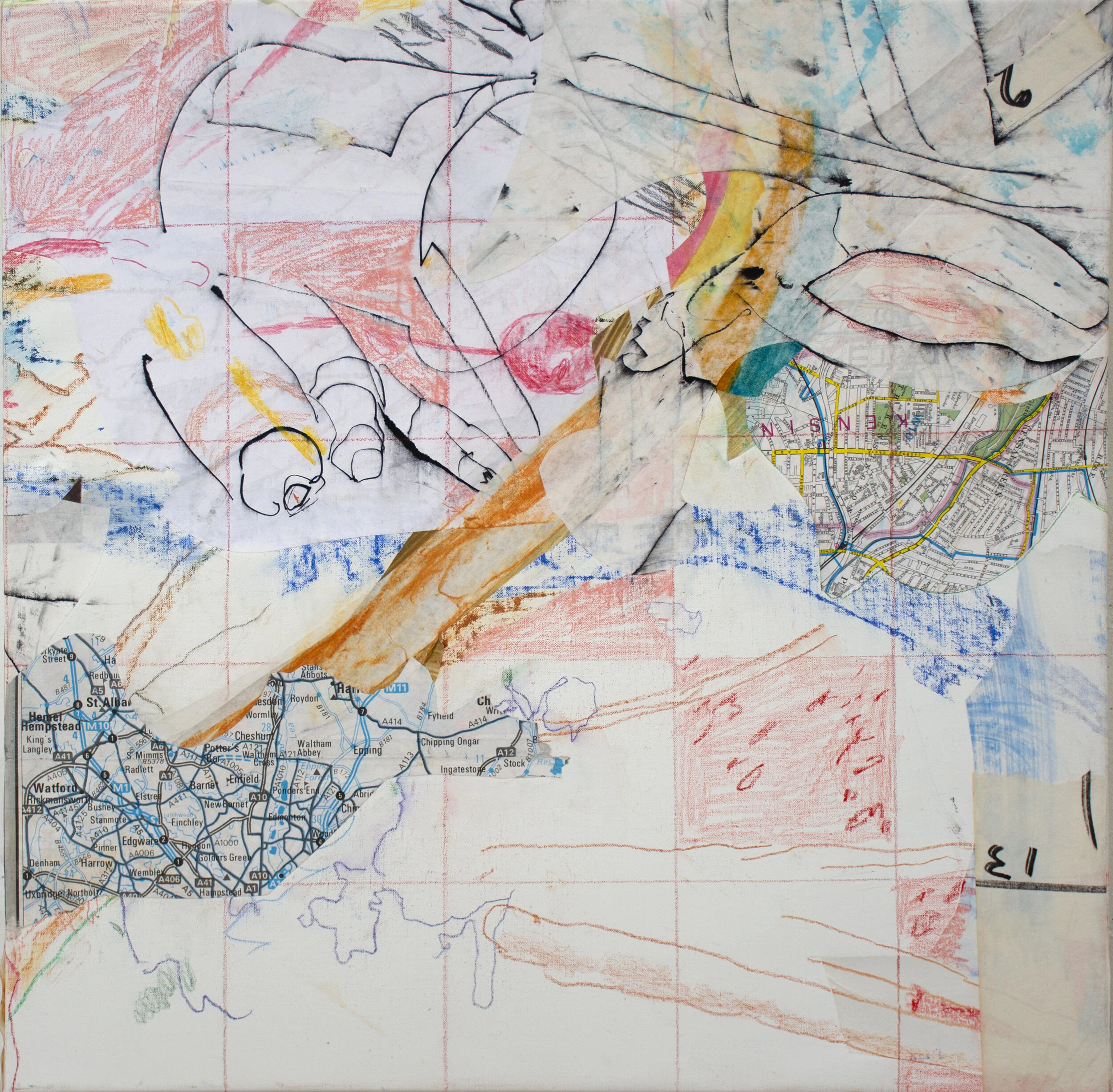 cropped 6/28/2021 creek drawing/collage after cropping to 20 x 20 in.
