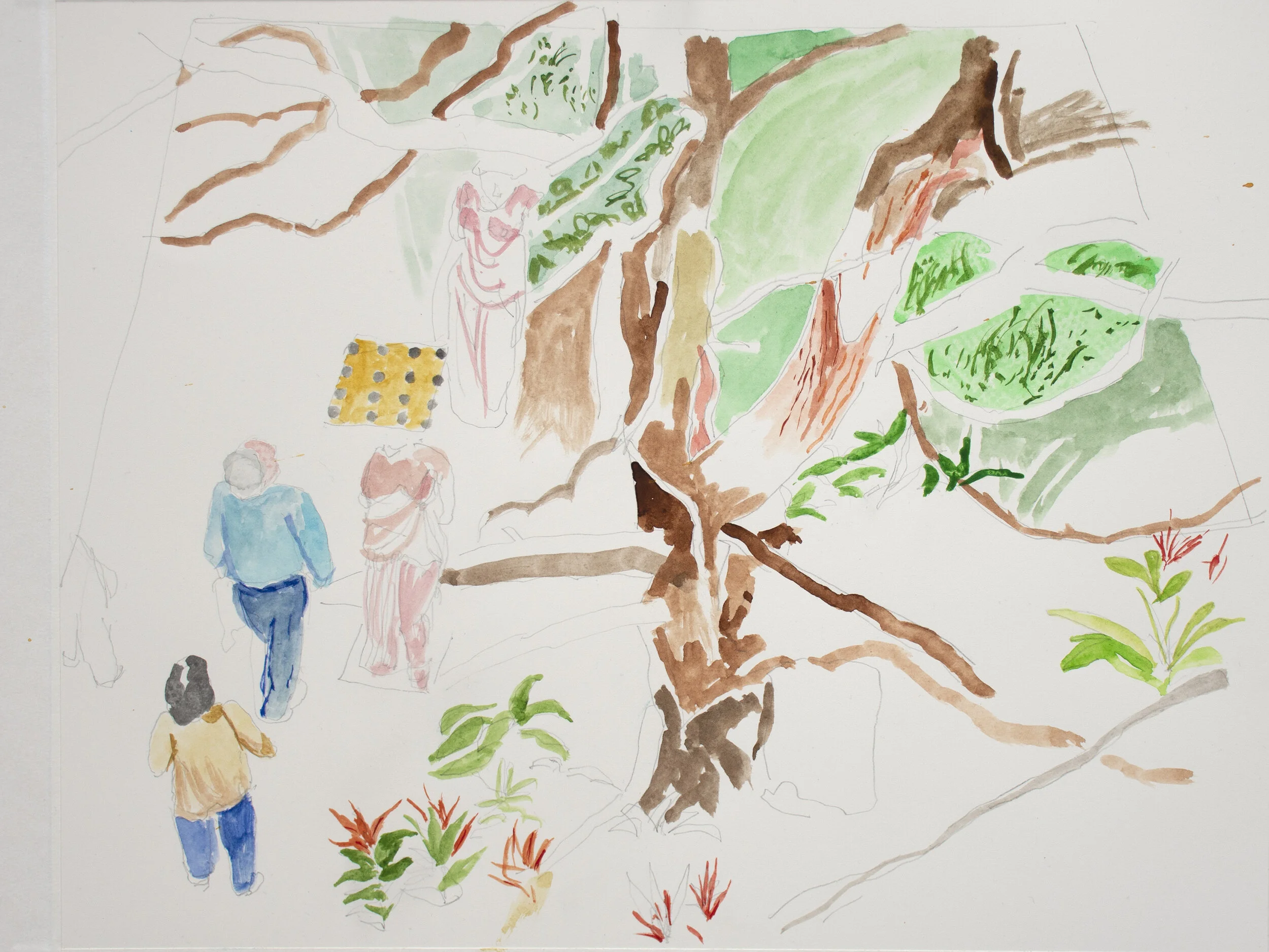 the detail on the left reveals the relationship between the tree trunk & branches and the caryatids, whose draped bodies echo the peeling bark of the dead tree.