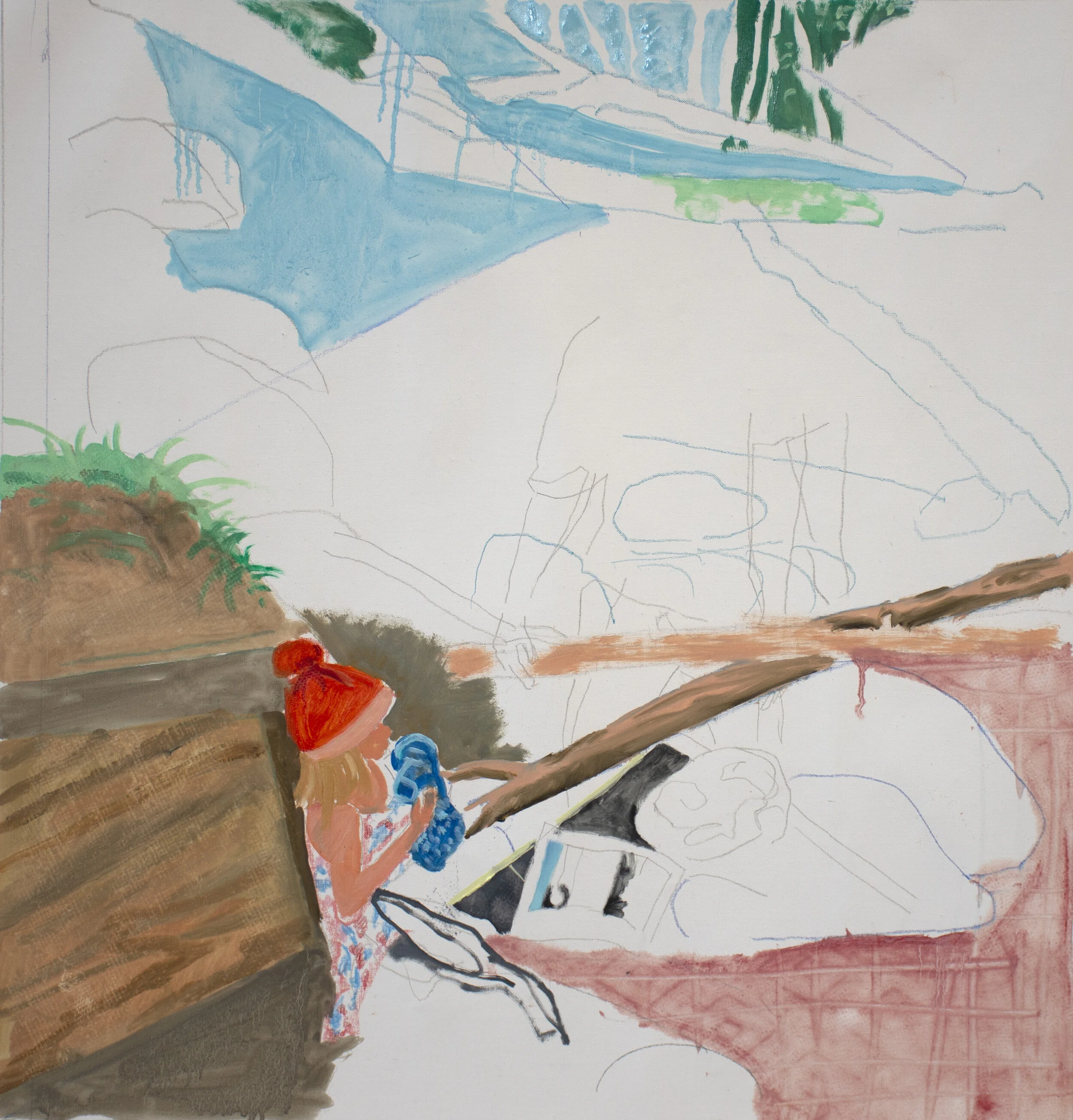 my direction involves integrating figures seen from above, which you can see in my Ano Kato series, https://www.philiptarlow.com/best-left-unsaid with views of the creek. you can see the figure of a little girl viewed from my studio loft in the lower left, and the sketched out branches & sky of the creek views above.