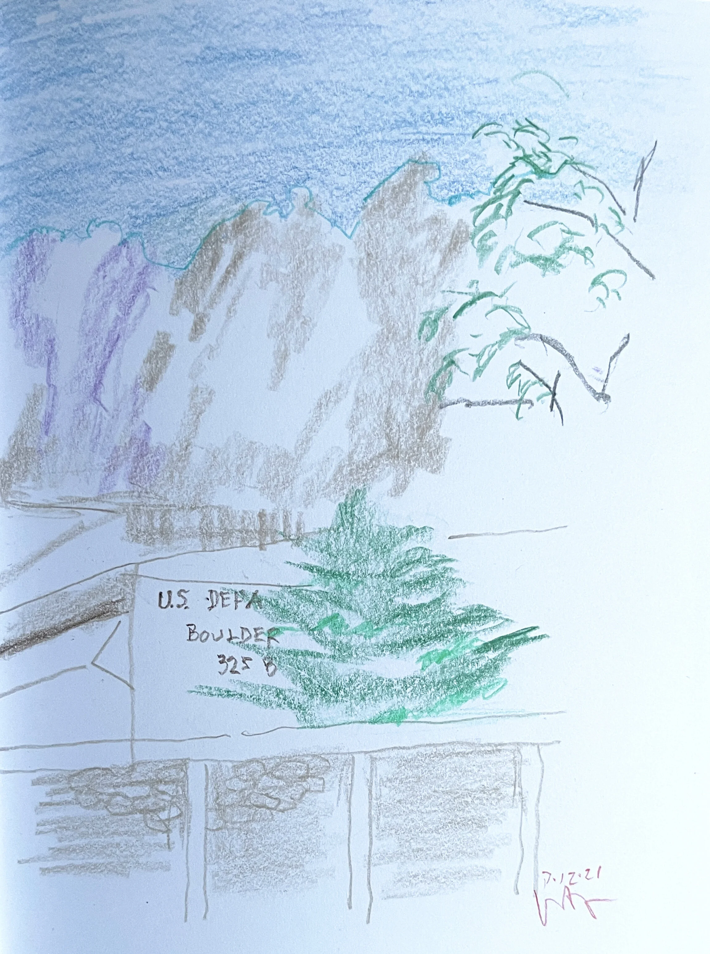 i din’t get a chance to make waiting room drawing, as i usually do. all i had time for, while i was waiting for mikela to come pick me up, was a quick drawing of the view from the netrance to my dentist’s building.