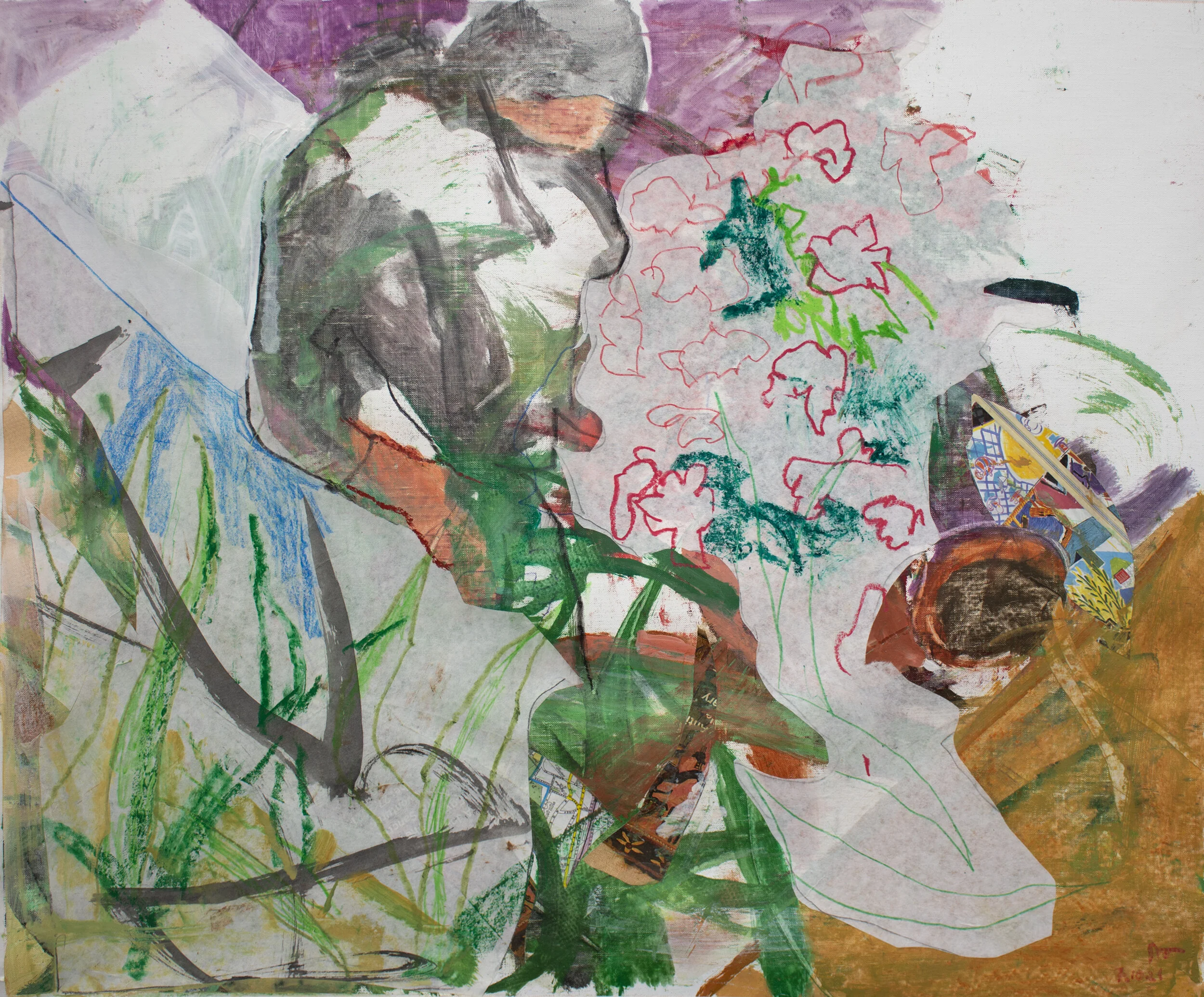 2:44 PM: I did more today to both 7/10/2021 creek oil and 7/9/2021 watering the flowers. I had thought latter was resolved, but every time I entered my studio & glanced at it, there was too much going on. especially in the area of the red flowers and green leaves. they were too strong, shouting loudly and dominating the composition. remind you of anyone you know? the diagonal on the lower right also bothered me & needed breaking up. and the addition of the blue adjacent to the figure adds a lot, I believe.