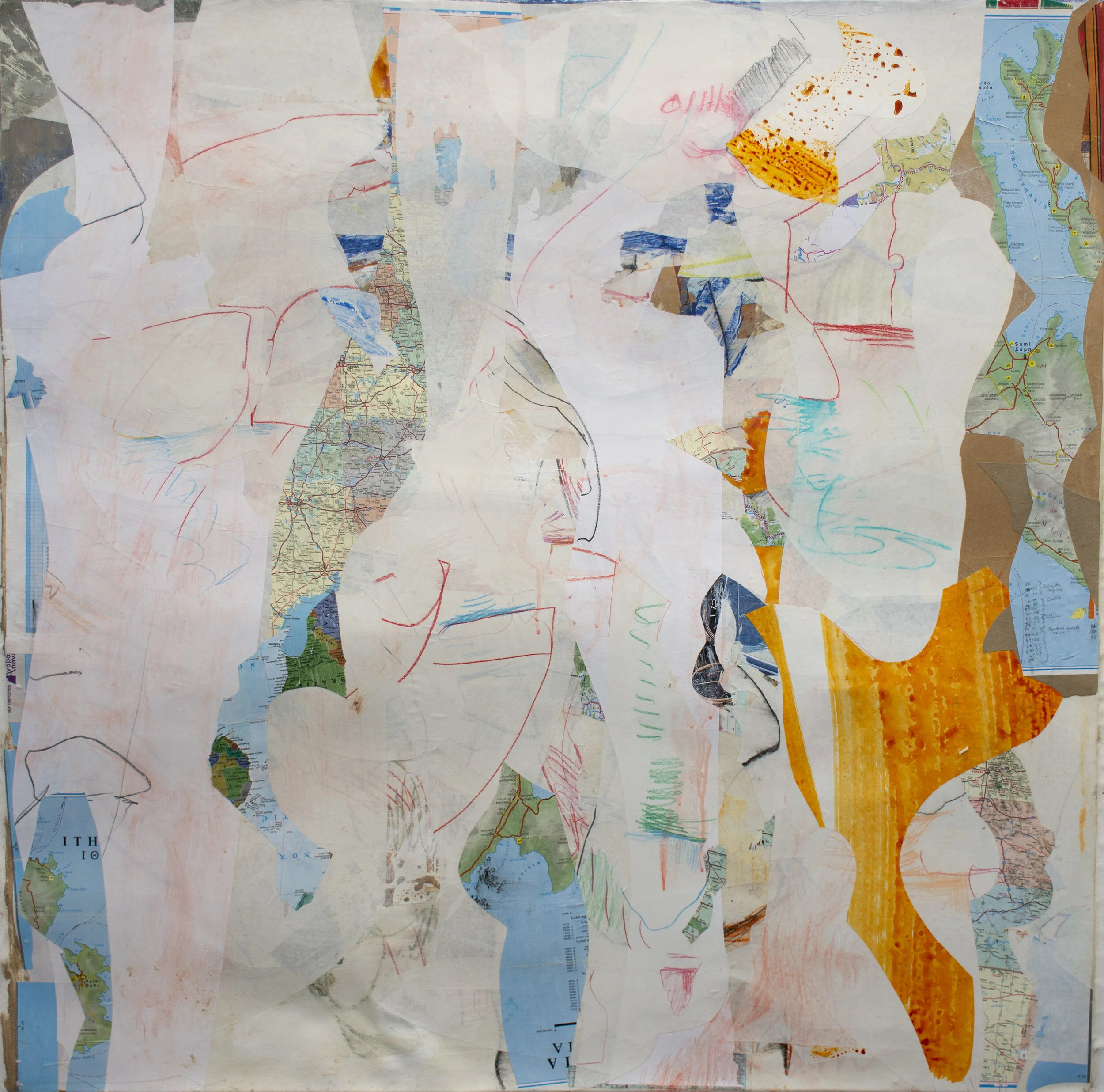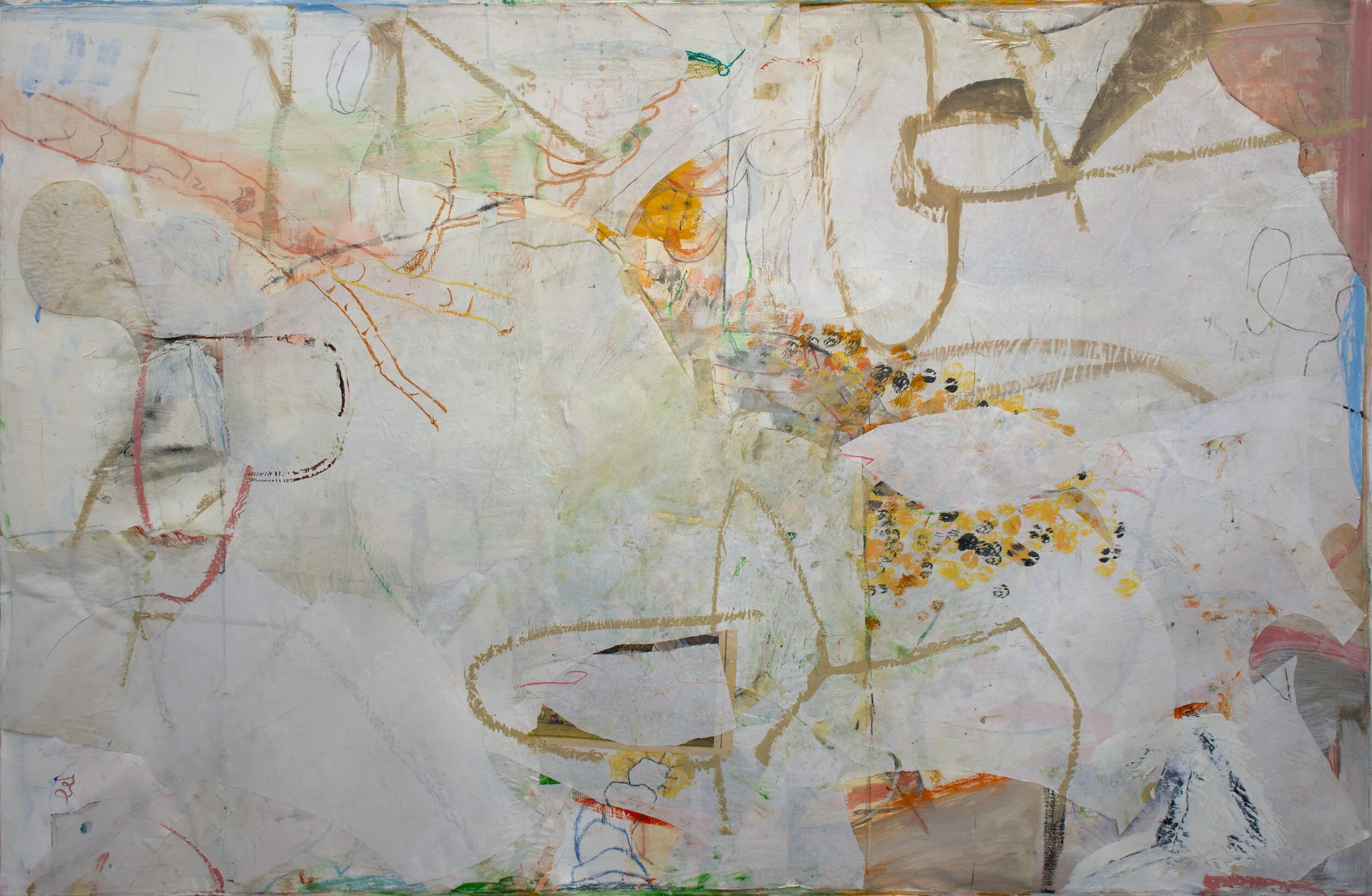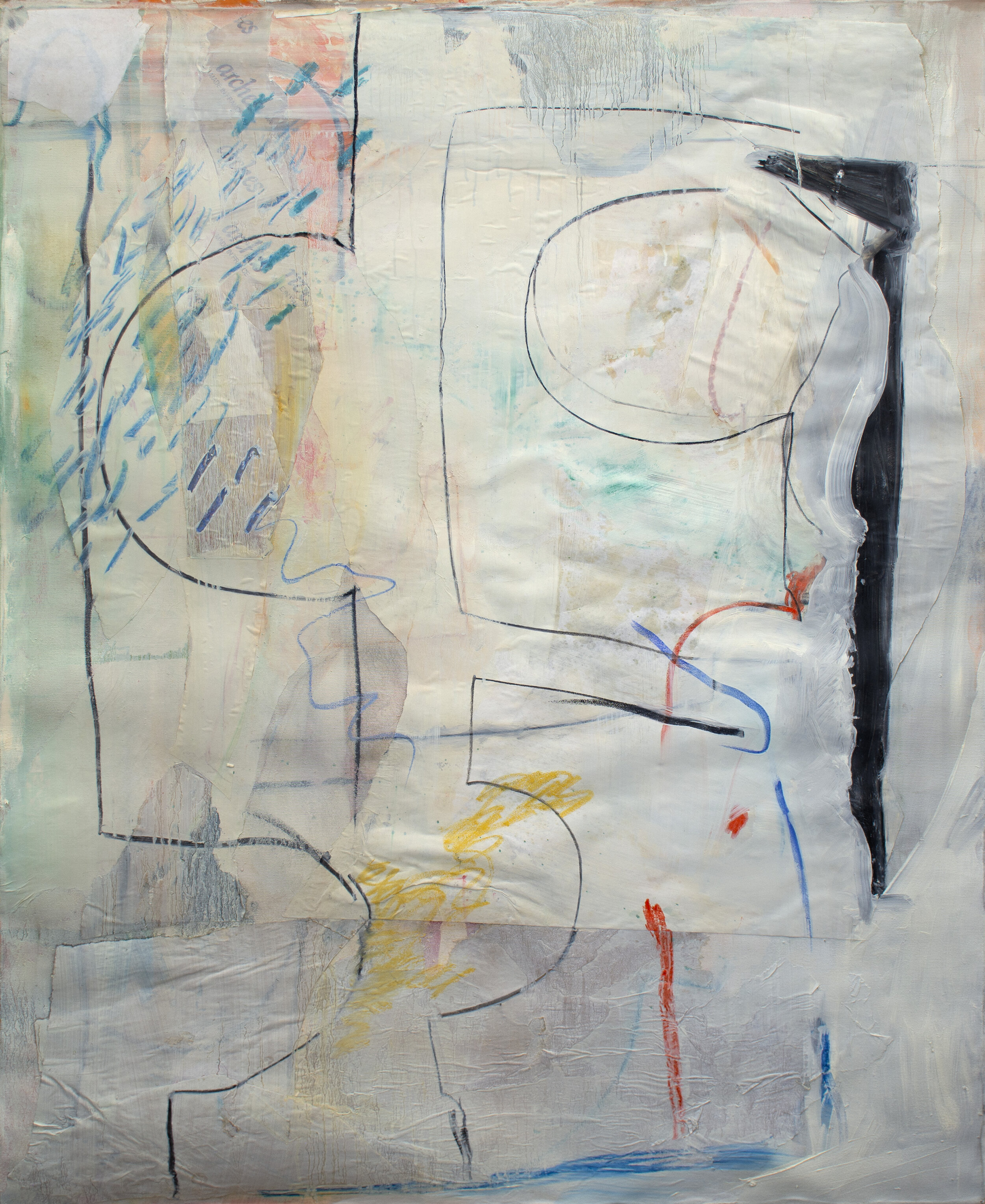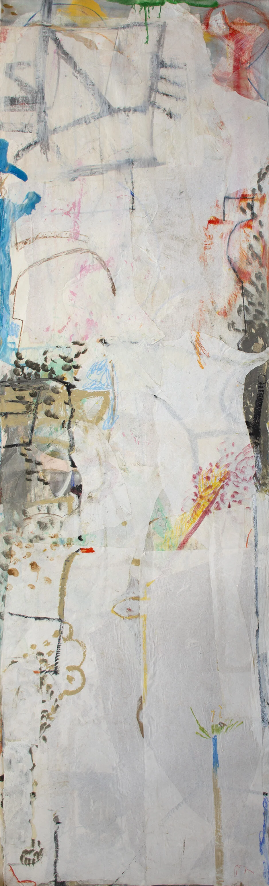it wasn’t there, but there were painting/collages I hadn’t remembered, from 2012 through 2014. because they contain collaged areas and are not stretched, I had to tack each one to the wall & smooth out the wrinkles as best I could in order to photograph them.