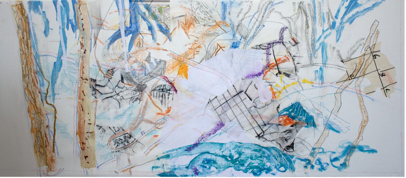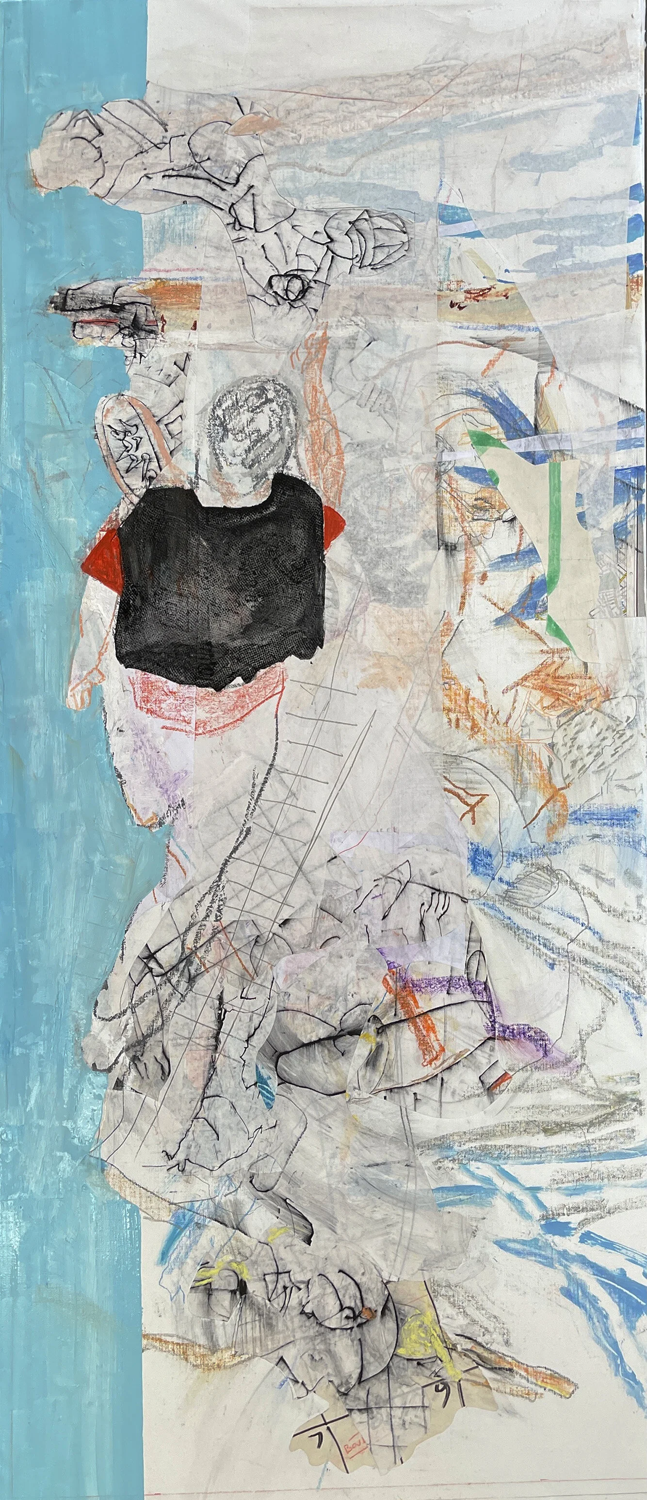 more pieces of an ink drawing I made 2 days ago were collaged in and ,perhaps more importantly, a walking figure seen from above has appeared. he’s also in 7/4/2021 creek oil.