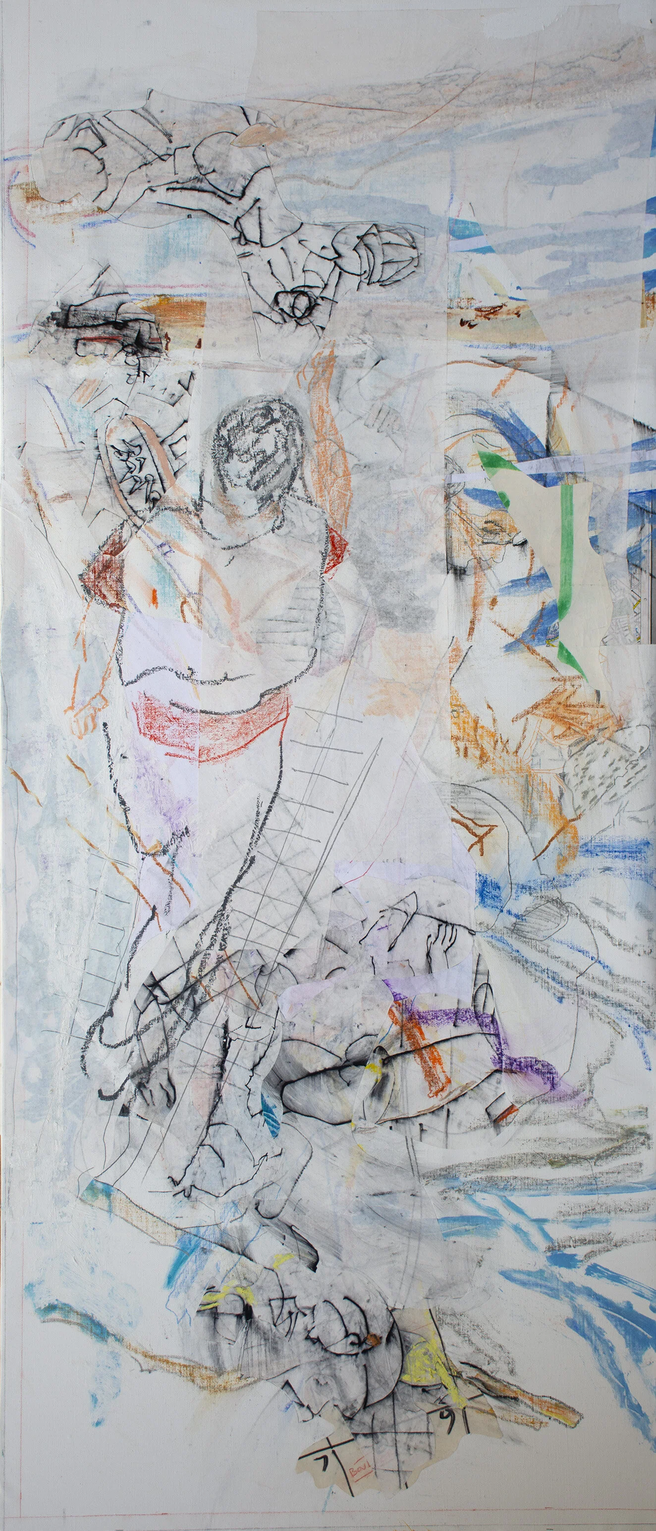 so, you might ask, where’s the creek? well, those bits of blue are, or could be, creek water, and the two just visible horizontal forms above the figure are, or started out as, tree trunks.