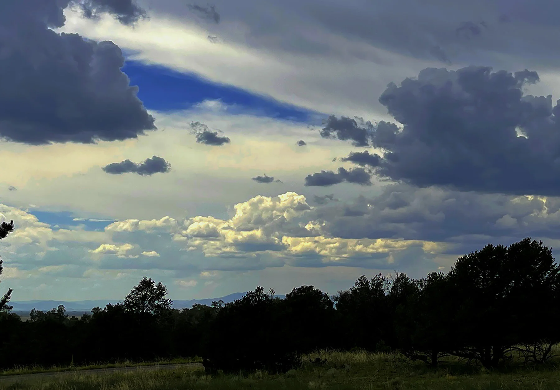5:04 PM: as predicted, today’s clear morning skies gave way to dark clouds and wind gusts, with thunderstorms likely towards sunset. as you know if you follow my posts, i love the skies here in crestone/baca, at all times of year.