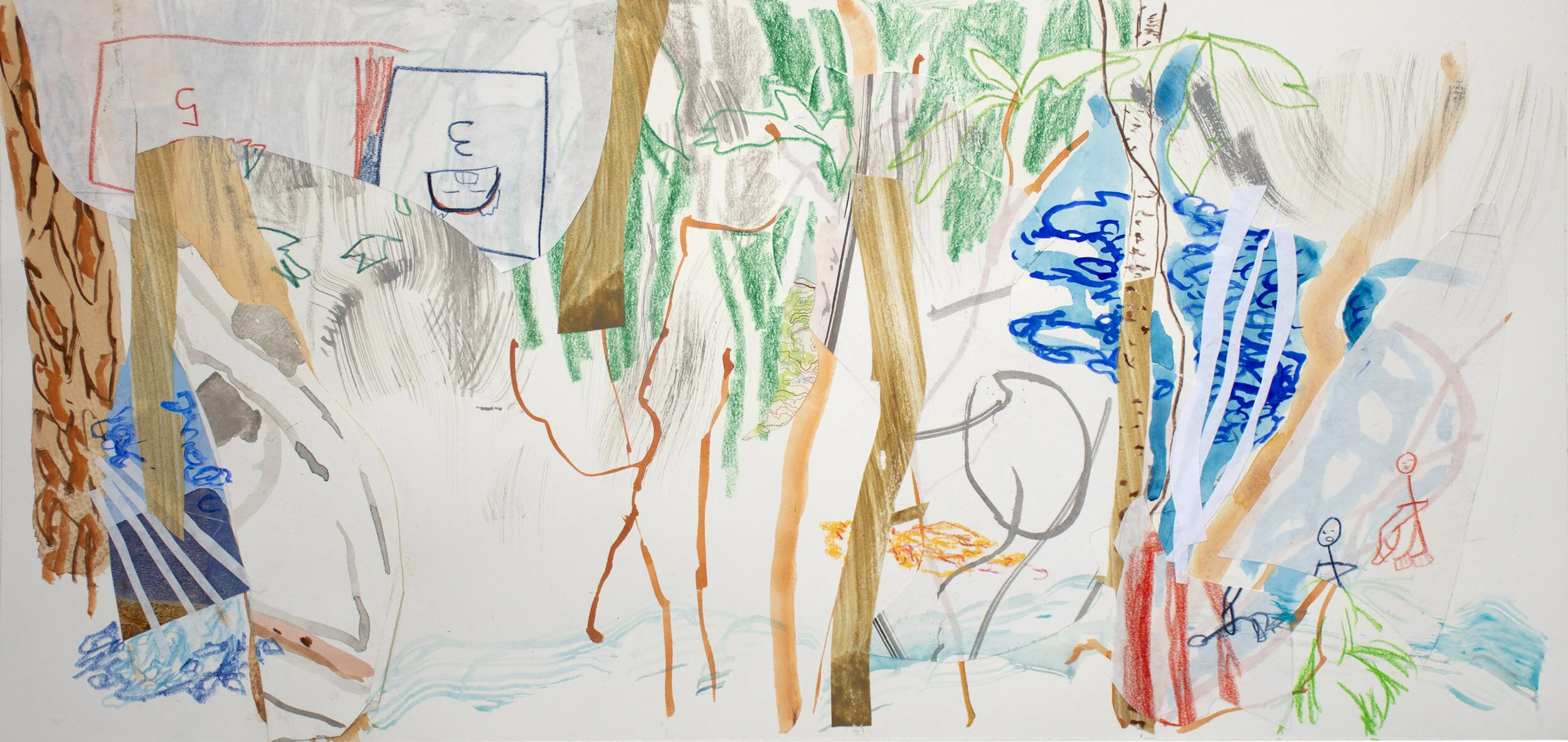 5:00 PM: ABOVE: here’s the latest stage of 7/4/2021 watercolor/collage. work/play will resume tomorrow morning.