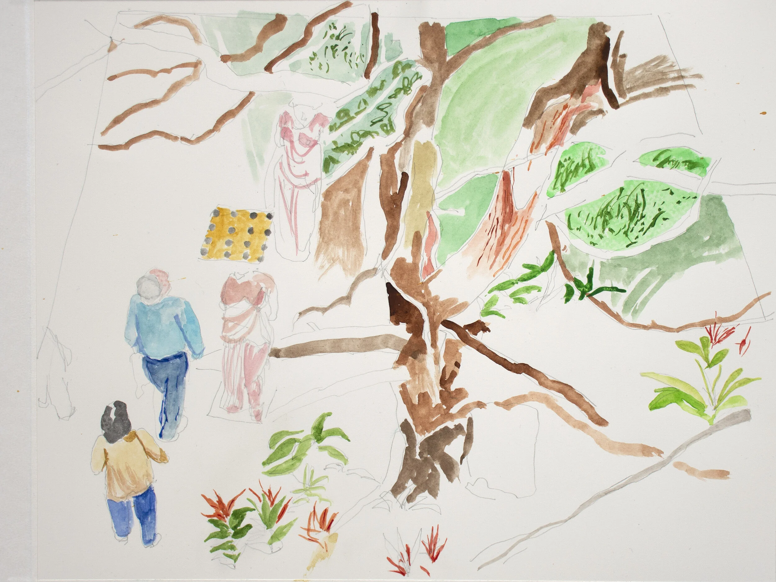 7/4/2021 watercolor/collage following this morning’s intervention.