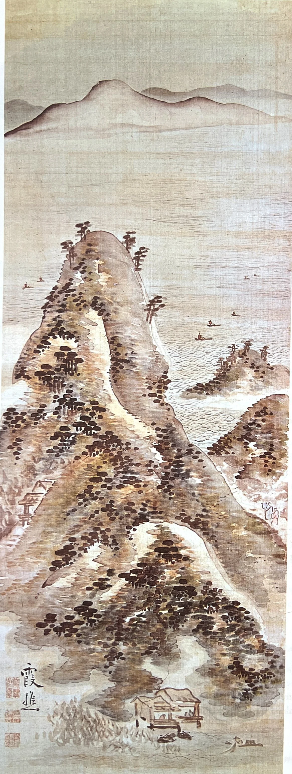 Taiga, View of Kojima Bay, 1749, hanging scroll, ink & colors on silk, 99.7x37.6 cm.