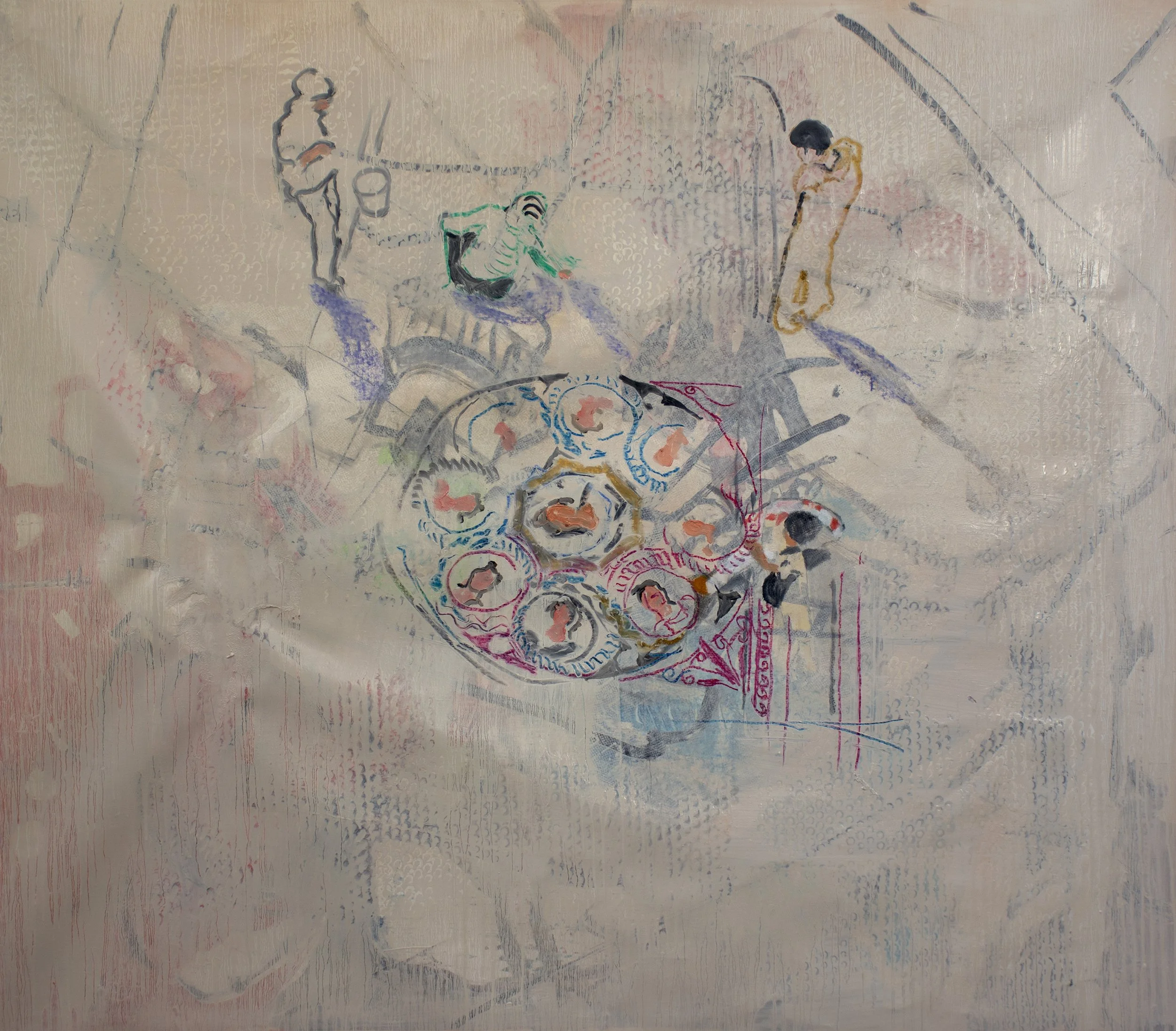 what i’ve done thus far is inspired by a photo I found of workmen uncovering and cleaning an ancient floor mosaic, which is a few thousand years old. there are a lot of patterns, and a lot of faces, male and female.