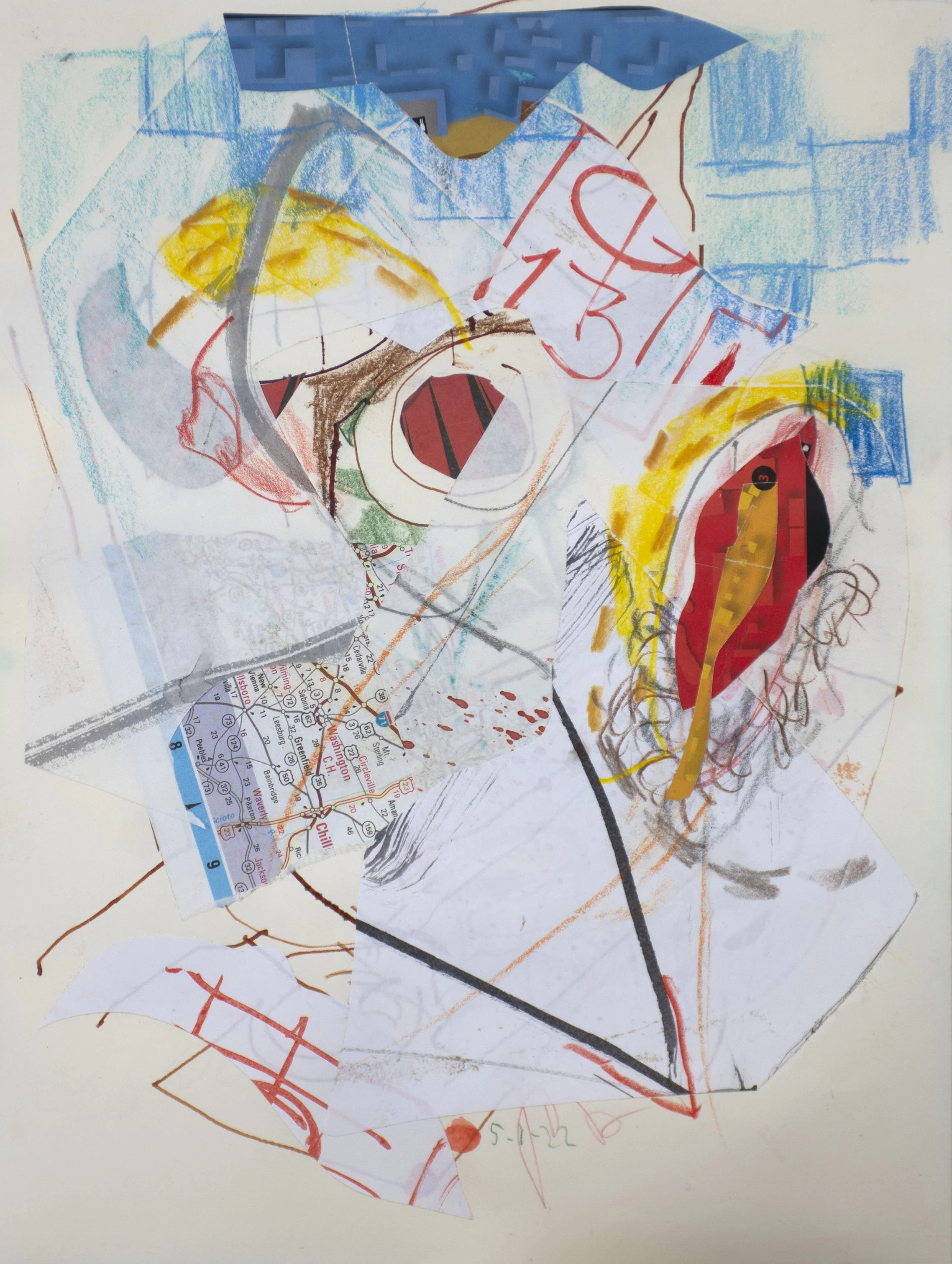 1:53PM: here’s 5/1/22 oil/collage stage 1 and my morning drawing, stages 1, 2, 3 and 4.