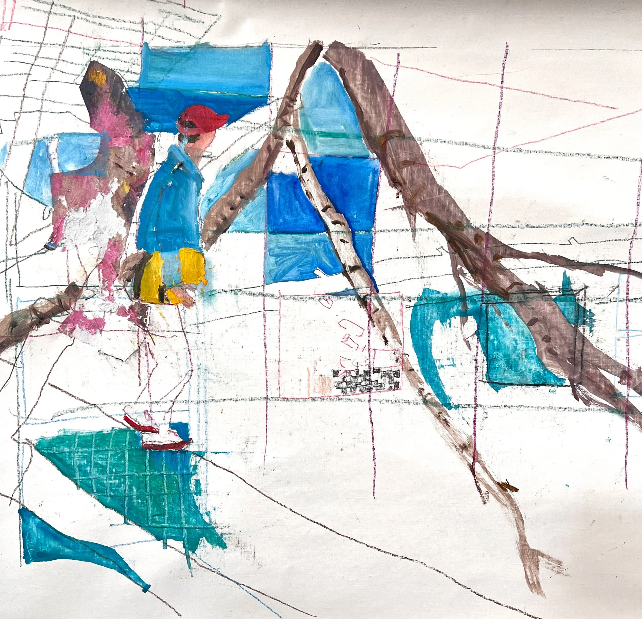 5/1/22 oil/collage continued /May 3, 2022 by Philip Tarlow 3:24 PM: today I took 5/1/22 oil/collage to the next stage. BELOW is a comparative view View fullsize DETAIL: 5/1/22 oil/collage View fullsize View fullsize