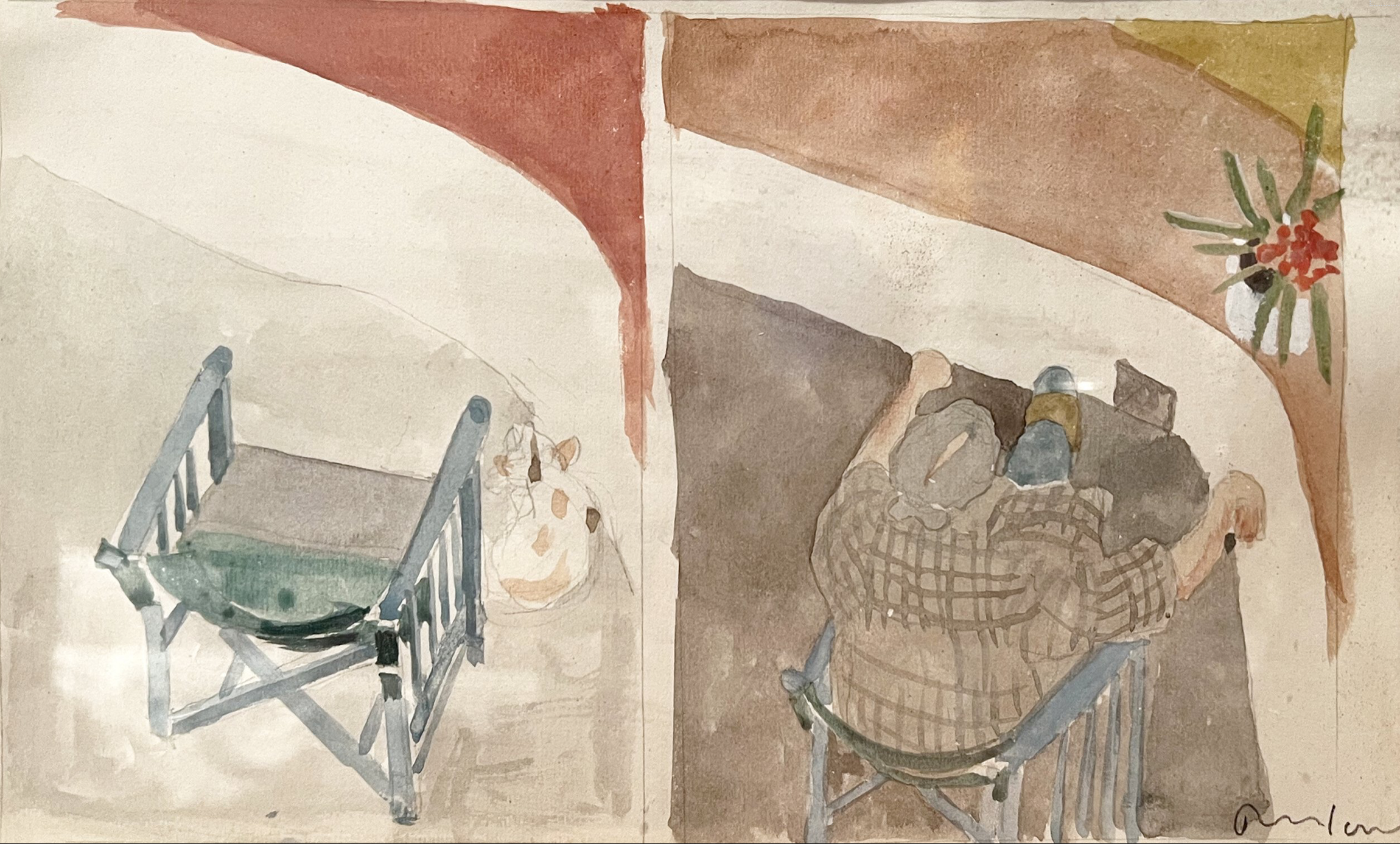 like the dinner party, the new series will be an updated version of my ano kato series (https://www.philiptarlow.com/anokato) which started with this watercolor, made looking down from my athens studio window in about 1972.