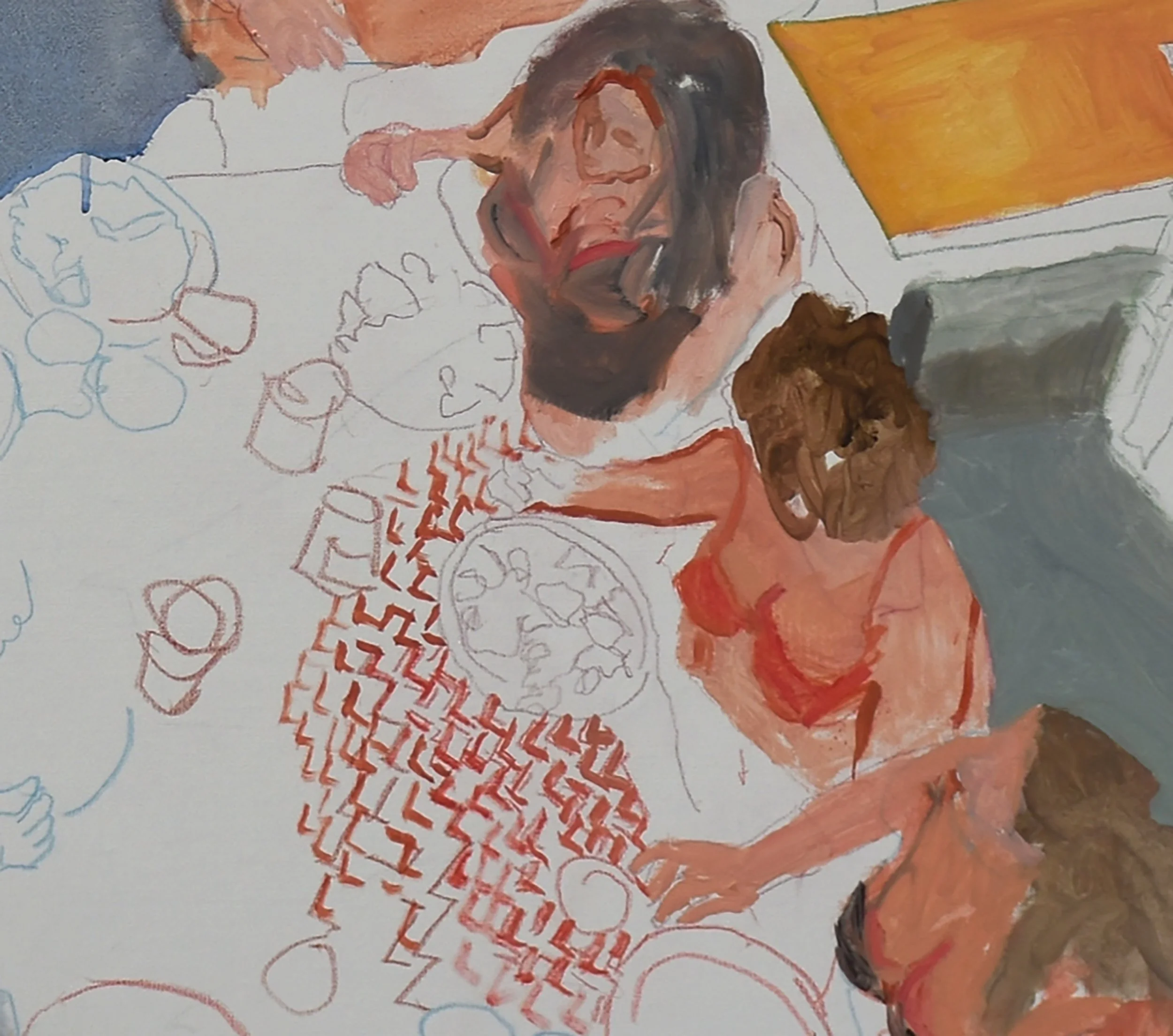 DETAIL: the dinner party, 38x40” oil on portrait linen