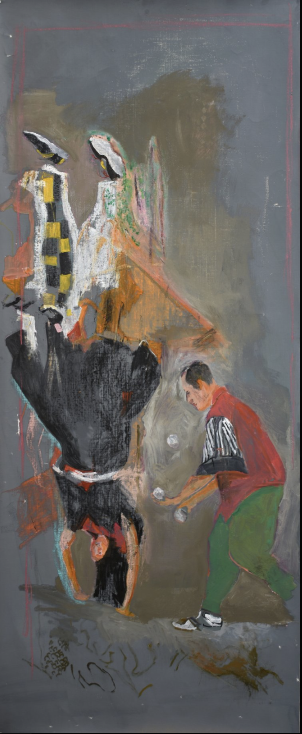 i’m also constantly amazed at how i can make a painting like handstand (BELOW left) and this july 1st collage (RIGHT) less than a month ago and then a painting like the dinner party. fortunately, i don’t have a gallerey director breathing down my neck trying to encourage a consistancy in my work. if you review my entire body of work over decades, you’ll discover that, indeed, there is a consistancy. it’s called PAINTERLY!