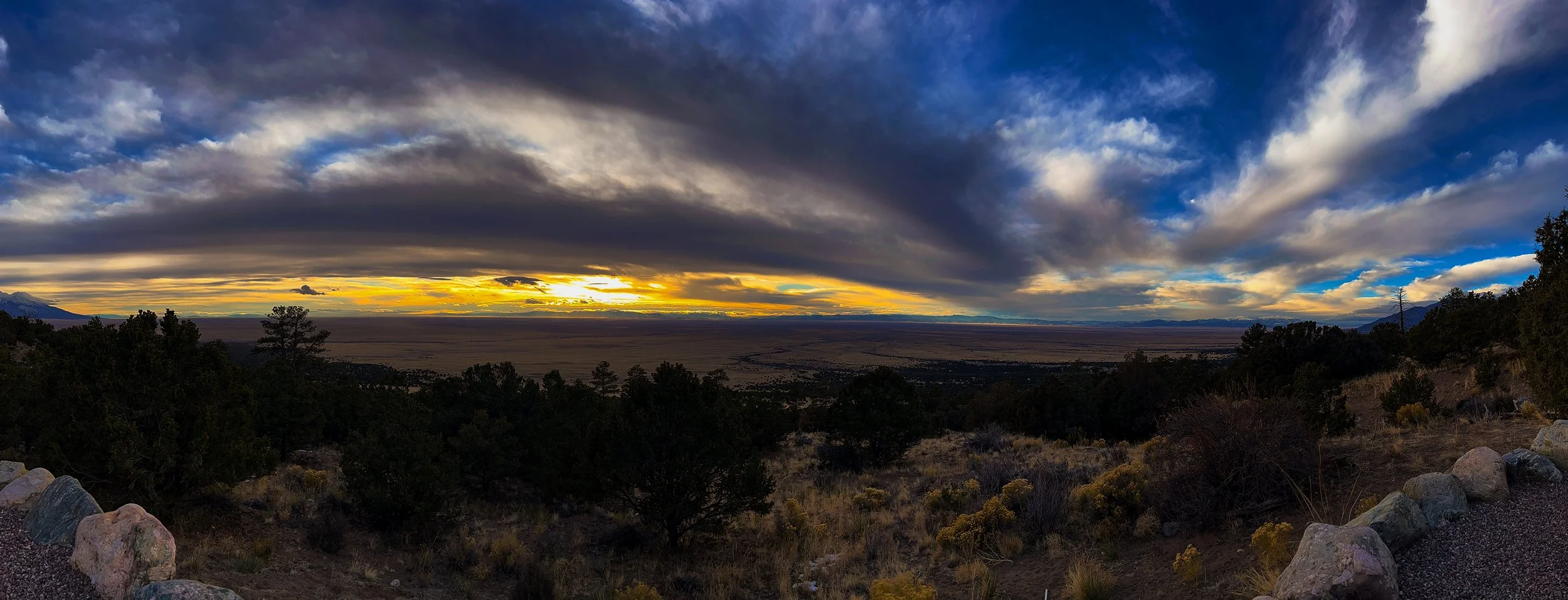 8:54 AM: as the storm clouds rolled in preceding last night’s snow storm, we took our afternoon Stupa walk, which ended early because it began snowing. our view of the valley at that hour was spectacular, and i tried to capture it using the panorama function on my iphone. the temperature was 45° so the precip fell as a mix of rain & snow, with very high winds driving the rain against our bed room window, which made a loud pounding sound. we ended up with .44” of new precipitation, which was likely over a foot on the peaks above 11,000 ft. a very good statrt to 2023!