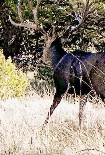 2:56 PM: i had a meeting from 10 to 12:30 today, so i couldn’t get to work untill a few hours ago. when i arrived at the studio, i spotted a large deer with big horns and a wound on his side. the same buck was seen about a week ago by someone doing work on our house. he called me out back to see him but he had moved on. joe, the guy who saw him, said he had an arrow sticking out of his side and was limping. i called colorado parks & wildlife to report seeing him, since we discovered they already knew about him and were trying to find him. they didn’t pick up, so i left a message.