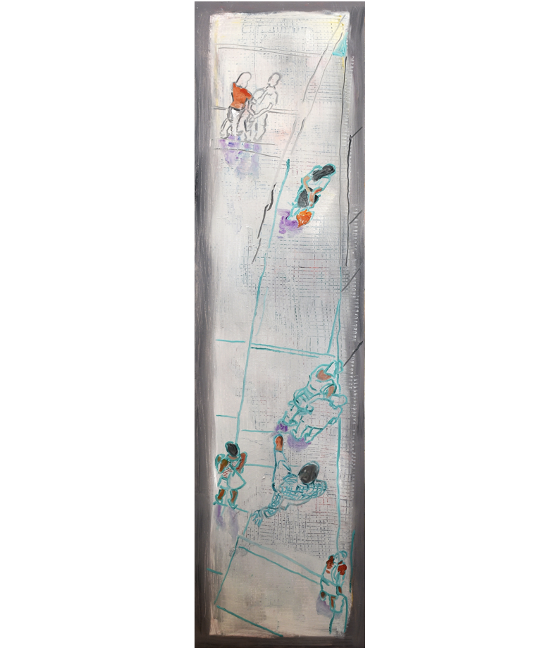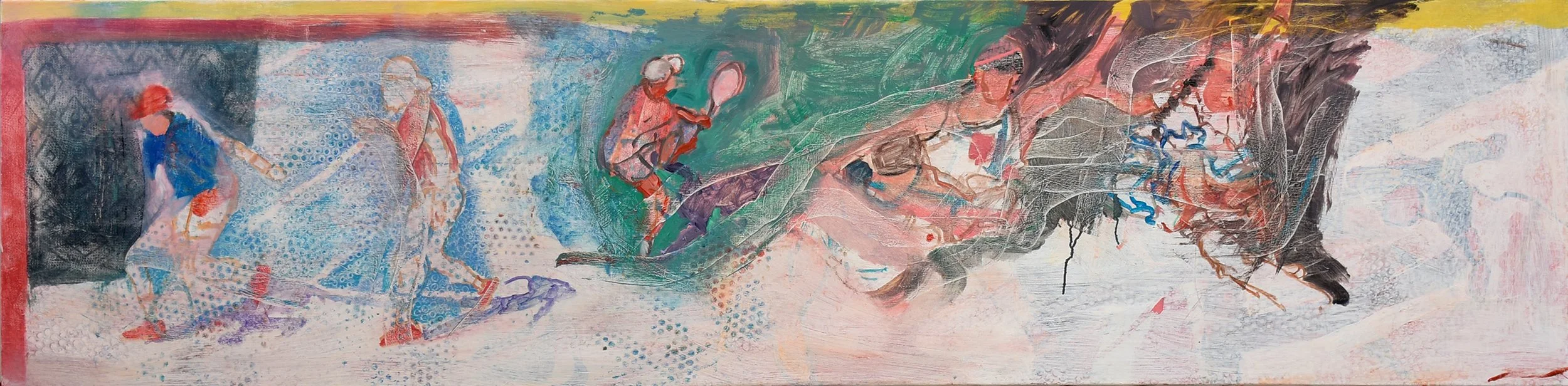 u.s. open I, 20x80” before it transformed today into figures from above PT paints into new figures from above IV