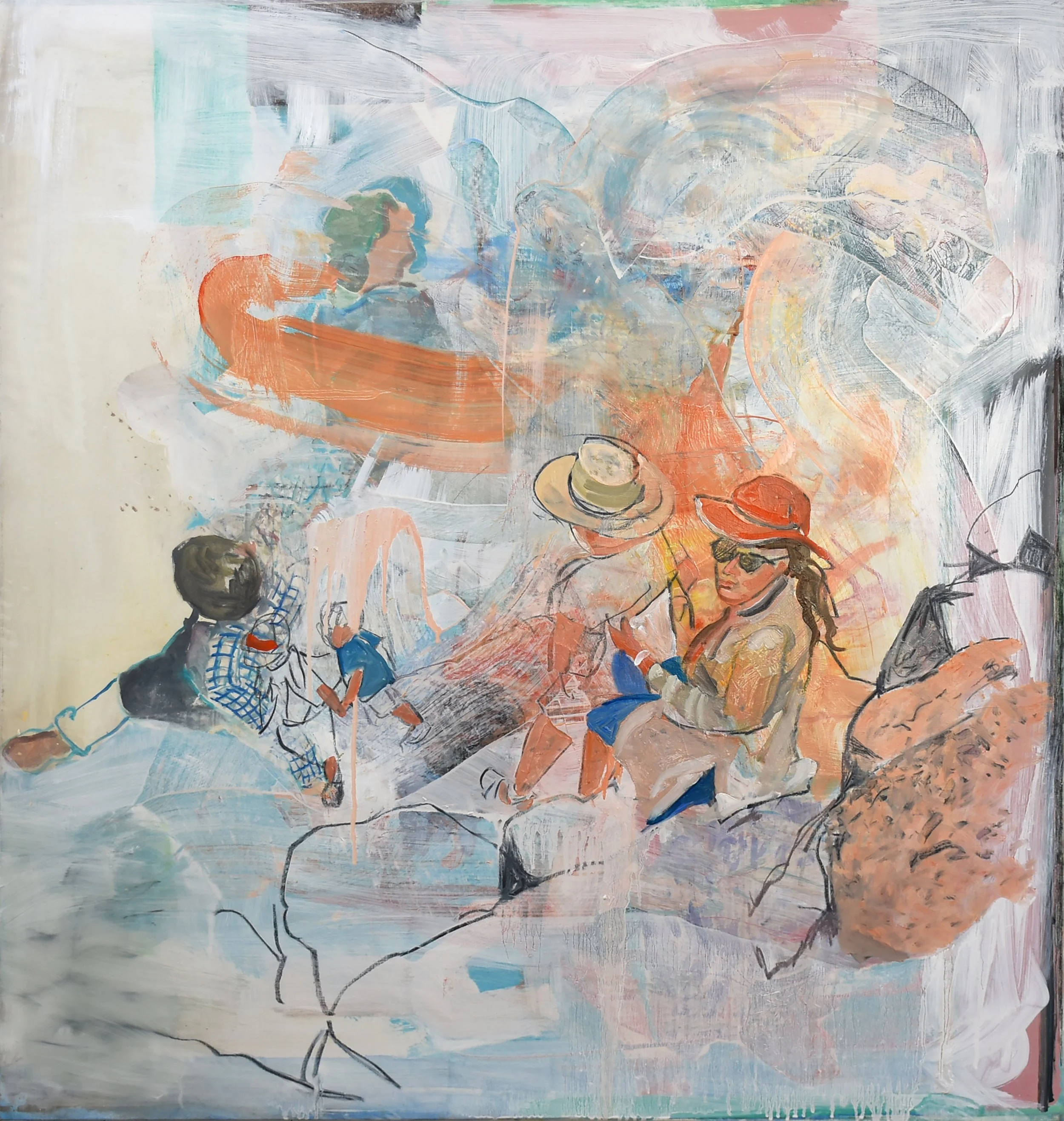 i mainly worked off a photo i shot recently in salida, of a couple on the rocks with their 2 kids. as is my tendency currently, there’s more suggestion than description. there are a few touches of blues, pinks and reds in the clothing and flesh, but nothing hard core descriptive.