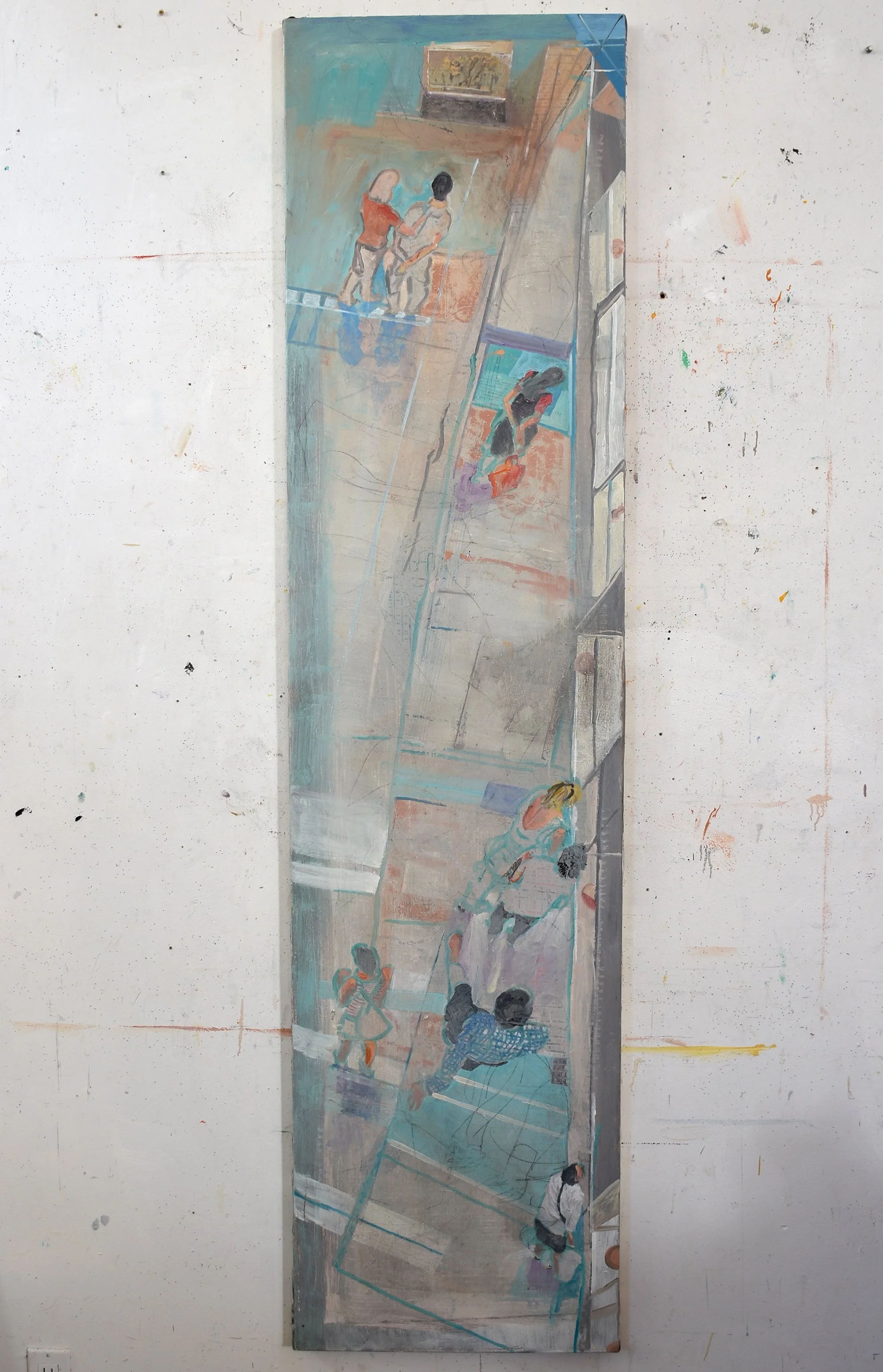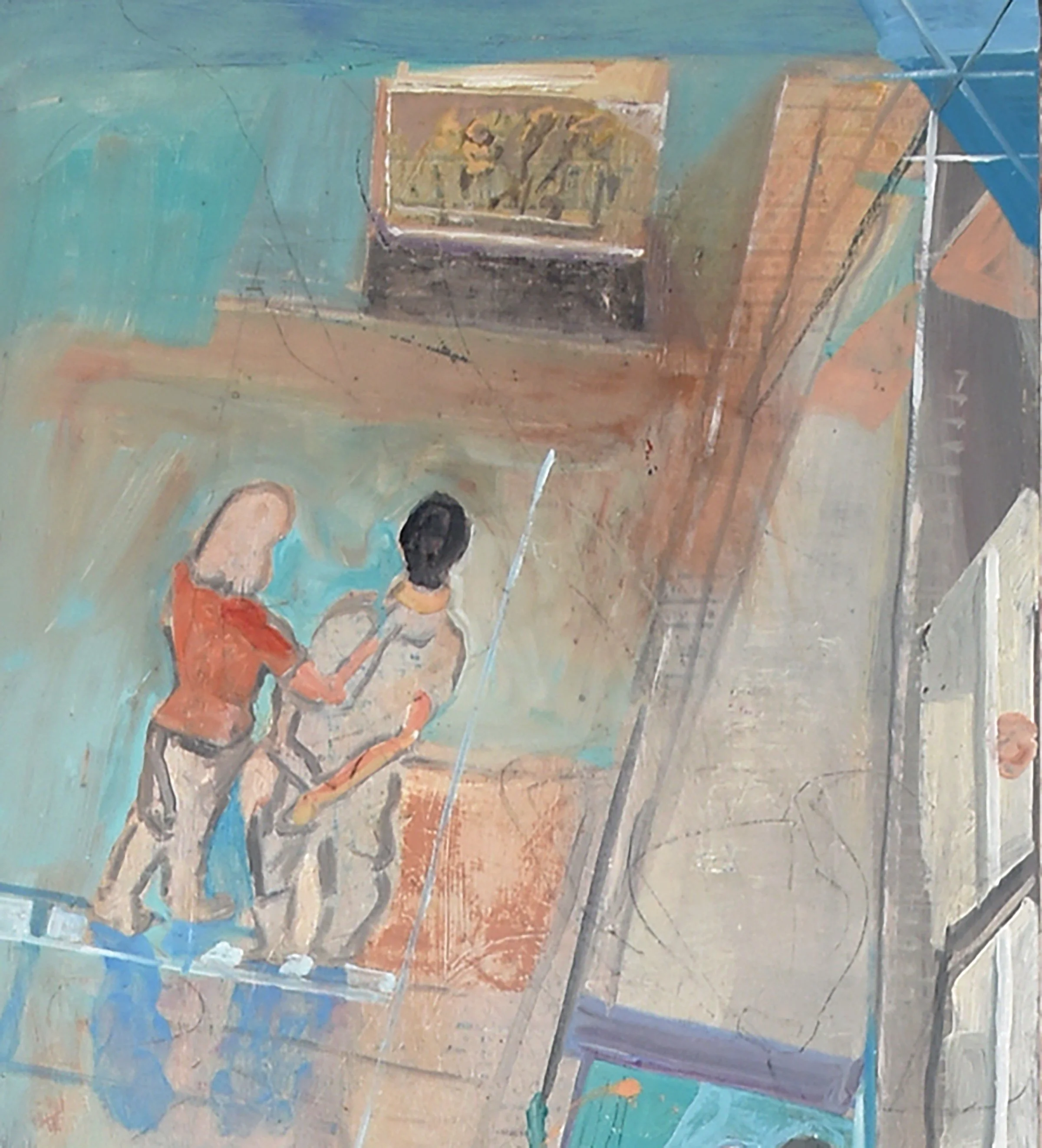 3:03 PM: although i liked the overall grey tone that resulted from my wiping off the black paint yesterday afternoon, i felt that there neede to be more accents of light and color to liven things up. this is where i’m stopping for the day, and i’ll continue tomorrow.