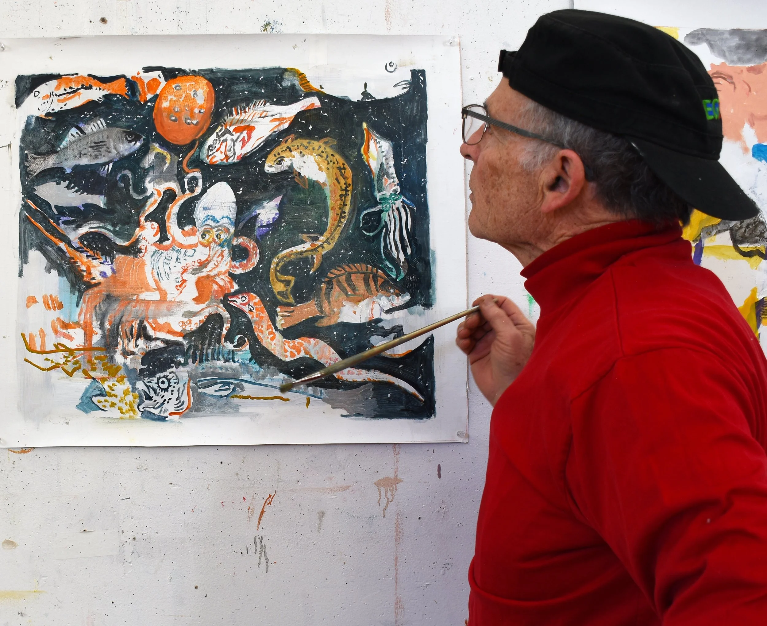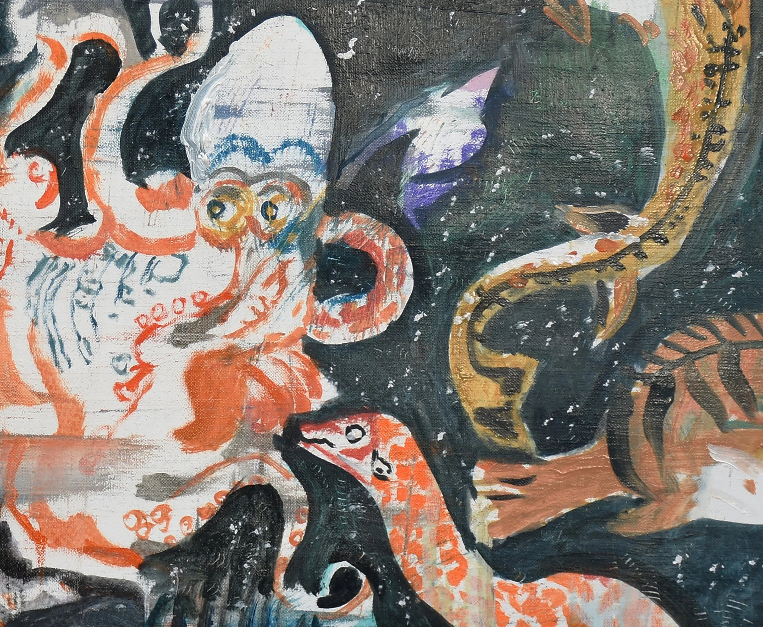 3:04 PM: now that i’ve got some of the more pressing logistics addressed for my show next month, i feel the freedom to do more work on the sea kinesis series of 3 paintings, inspired by ancient roman mosaics.