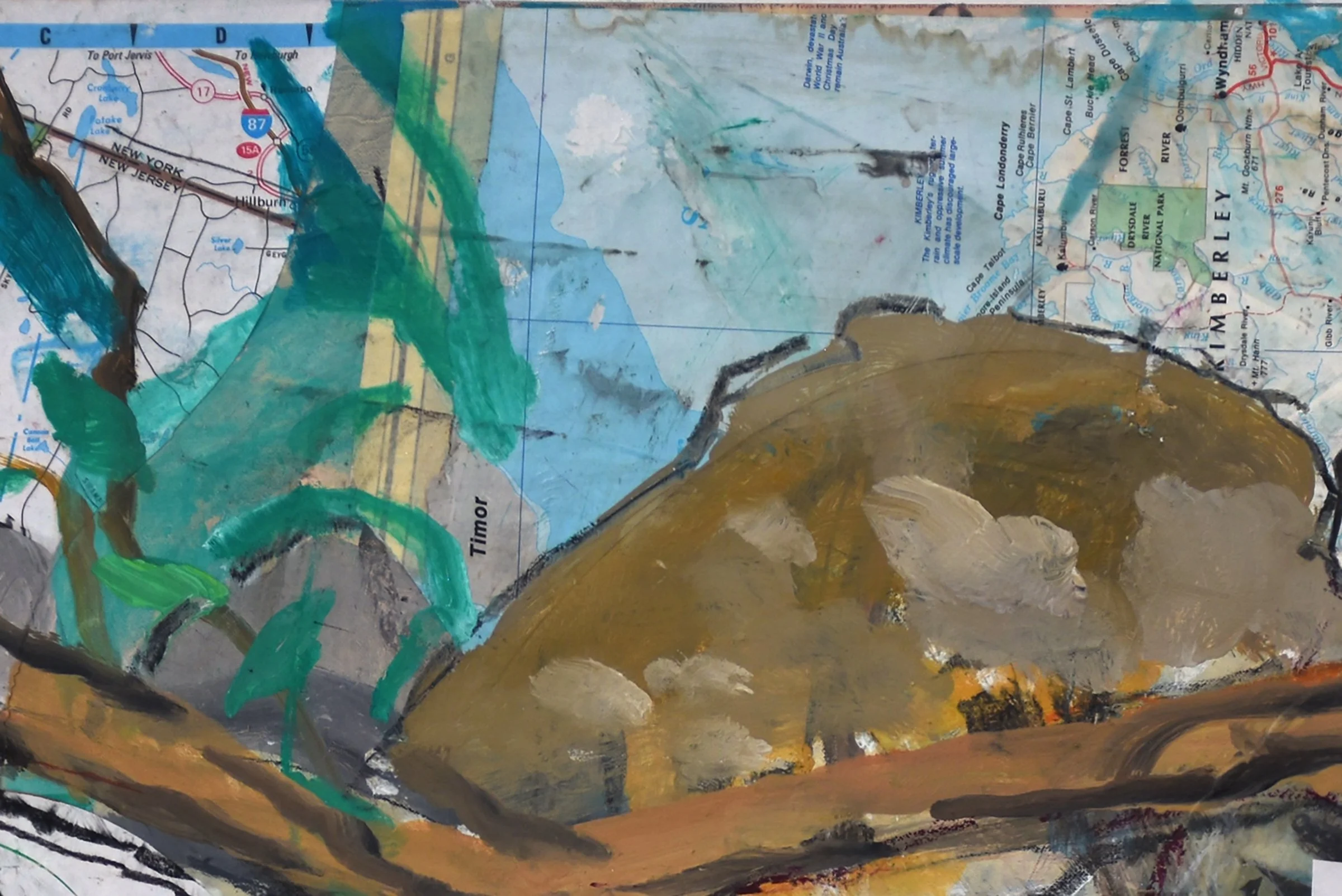 DETAIL of the green marks breaking up the straight edge of the collaged map