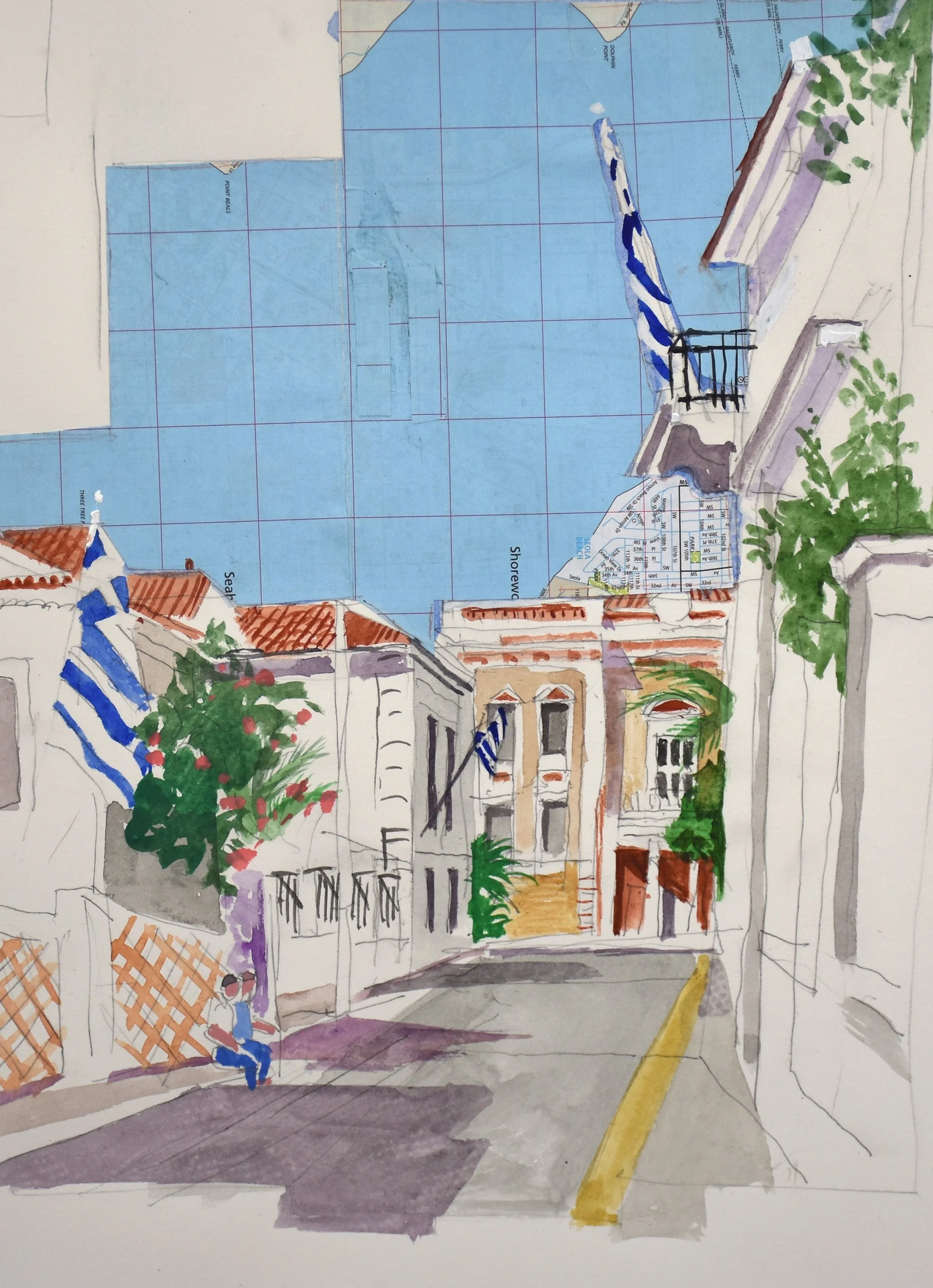 chora neoclassical II, 33x24cm. watercolor & collage