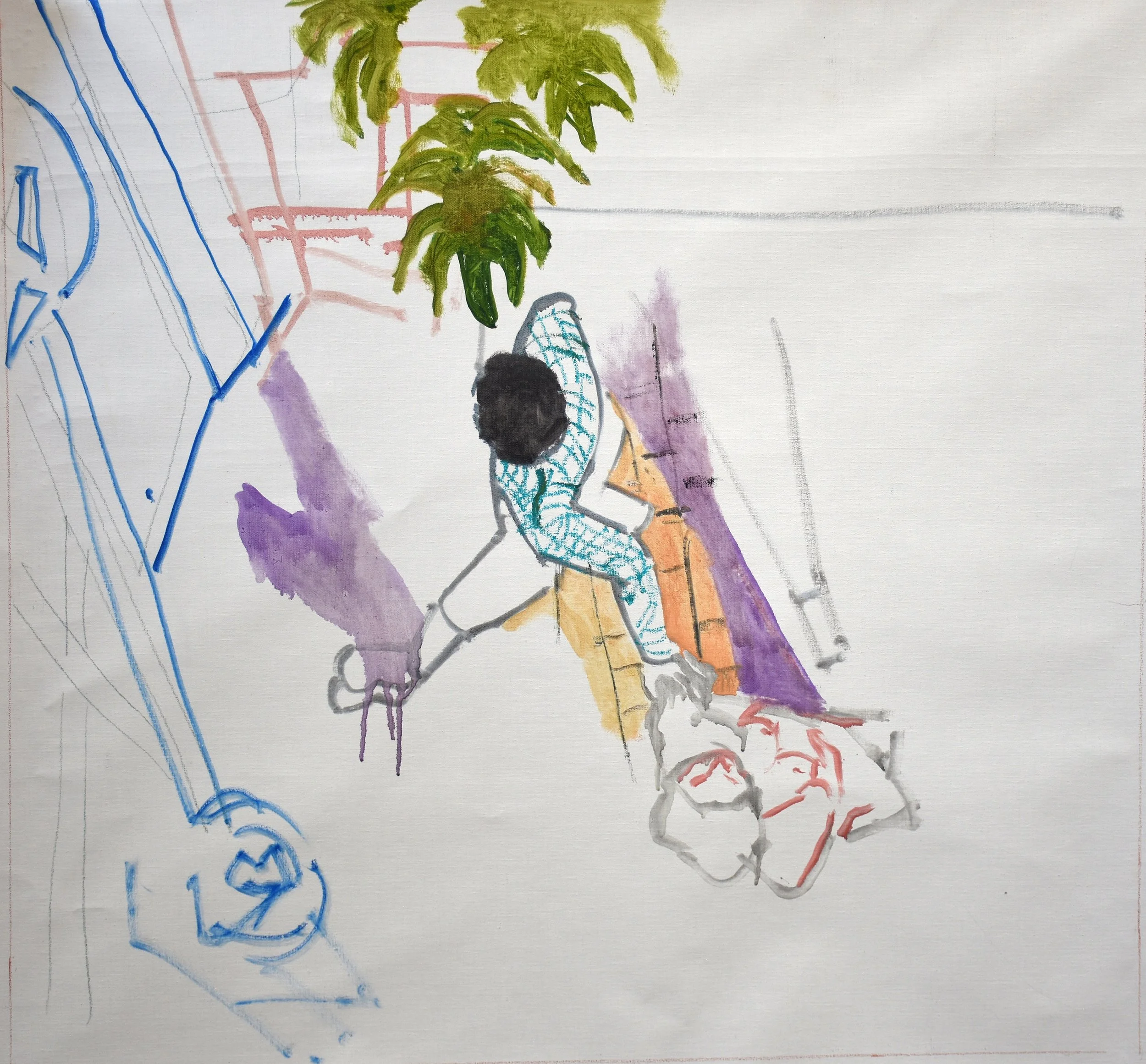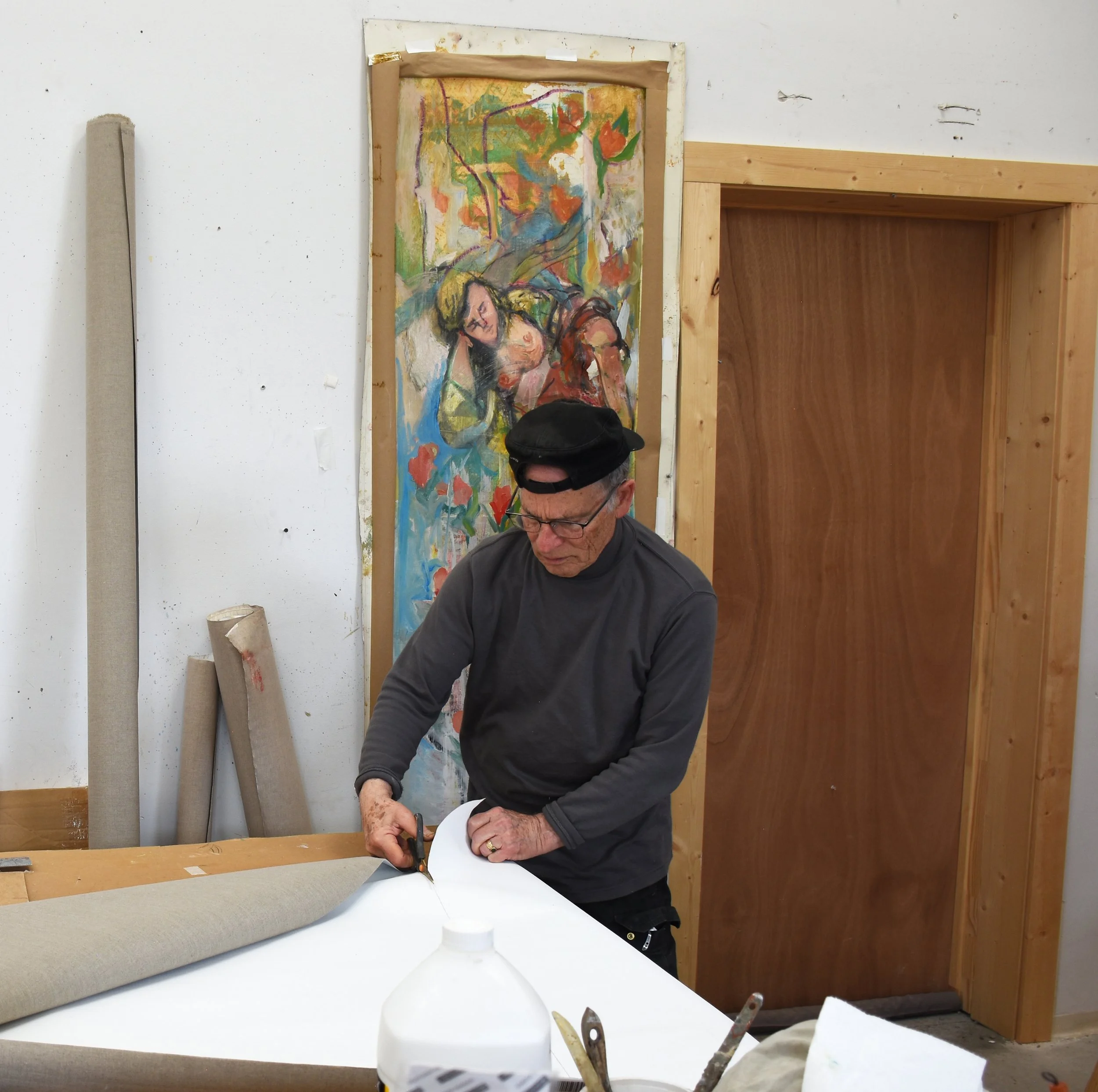 4:13 PM: a few hours ago i started work on a new painting: good doc II. i’m using one of the two pieces of primed linen i cut this morning (see photo below.) the dimensions are 35x37”/89x94cm.