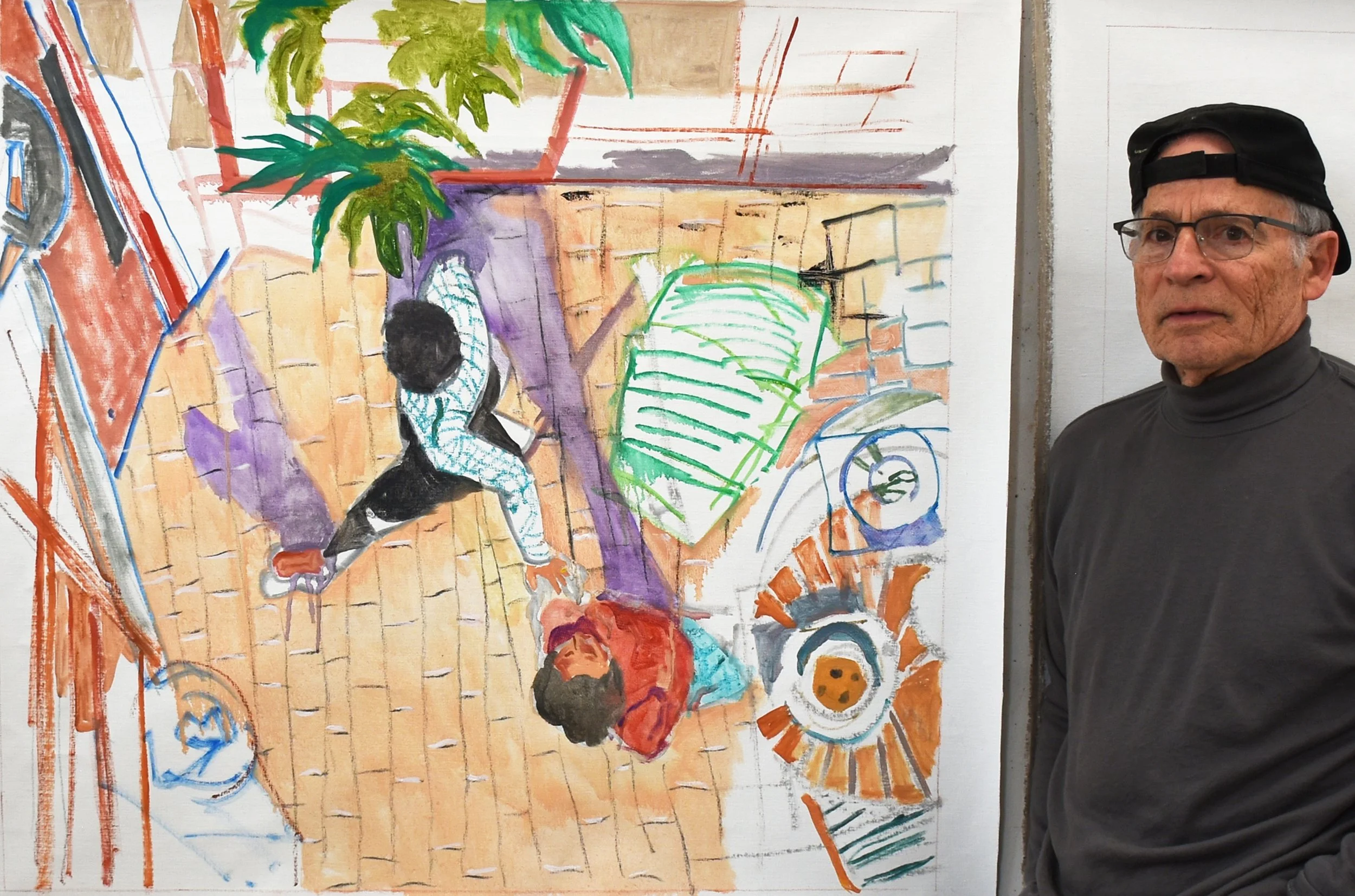 you can see what i did that’s new if you compare yesterday’s version, BELOW left, with today’s. i worked on everything but the two figures, with the exception of the face of the female figure dressed in red, and the black trousers of the male figure.