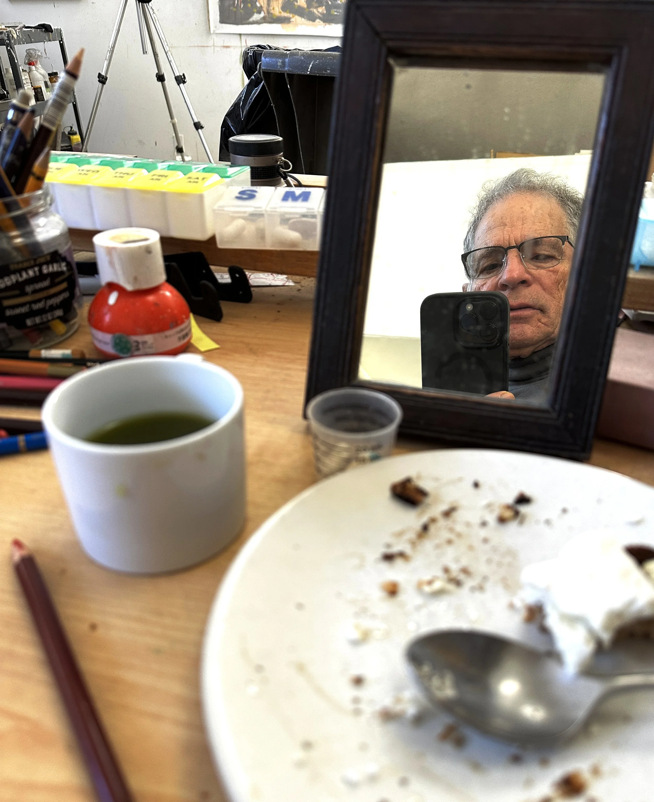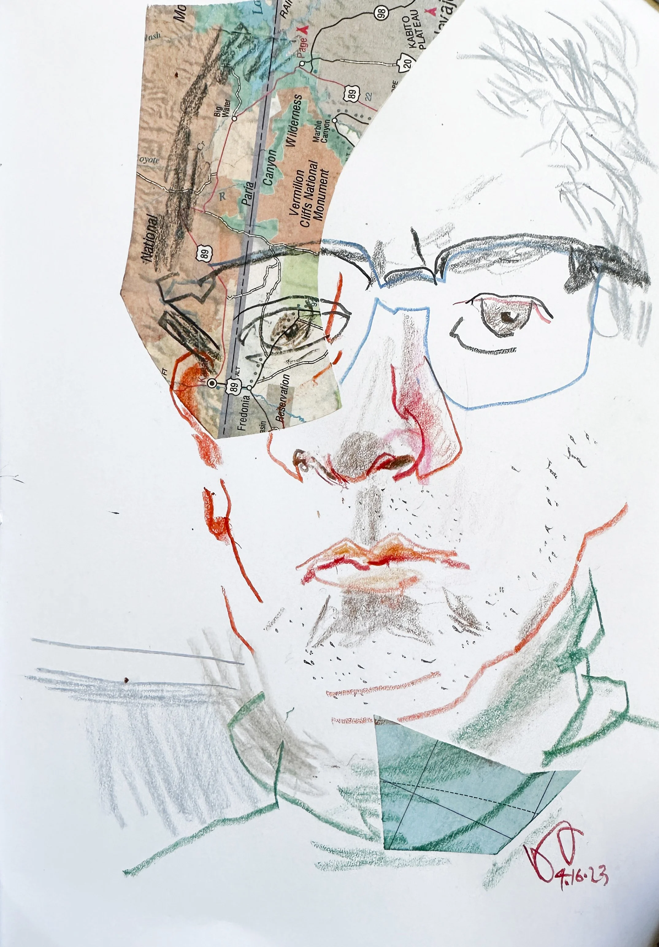 and here’s my morning drawing for today, which is a self portrait in this mirror, with collaged pieces of map.