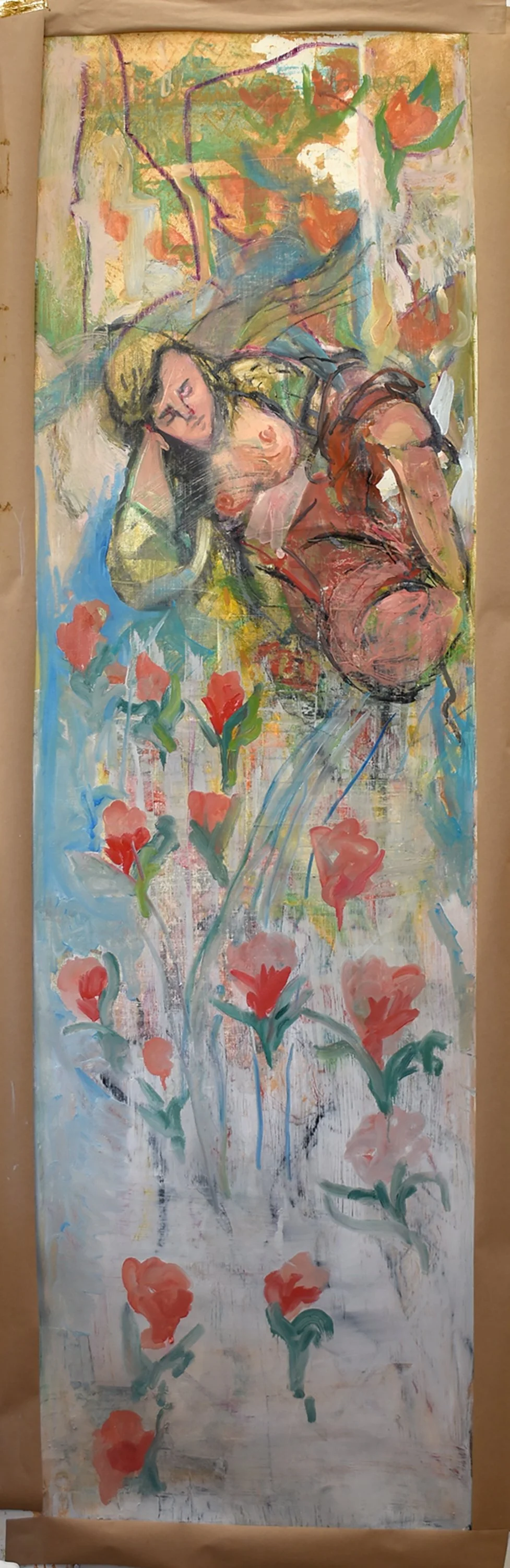 1:04 PM: this morning i completely painted over periscope, so that the femaile figure with the flowers beneath her are gone.