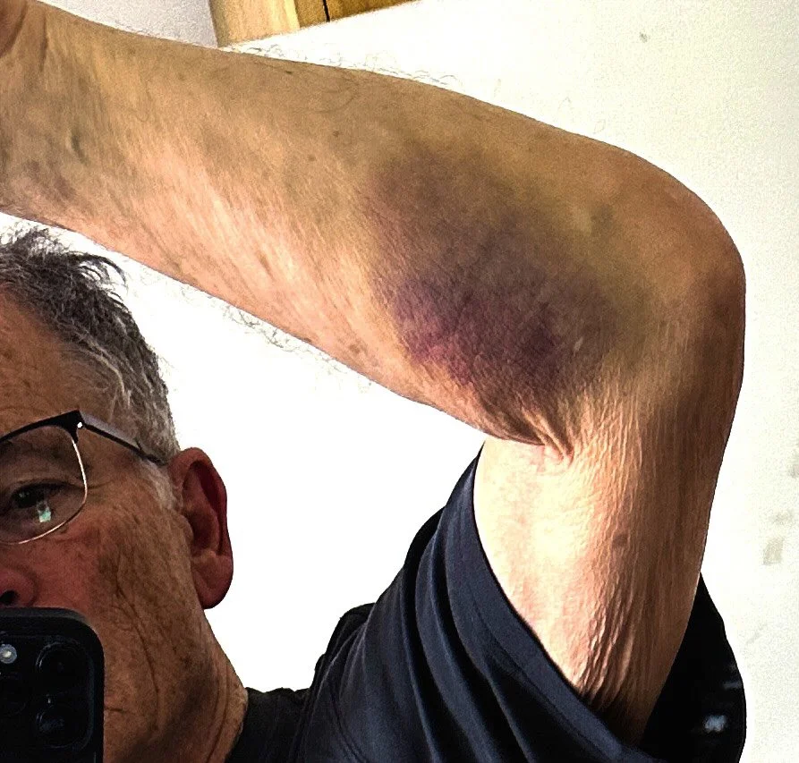 my arm got bruised when i fell yesterday, & hurts a lot today