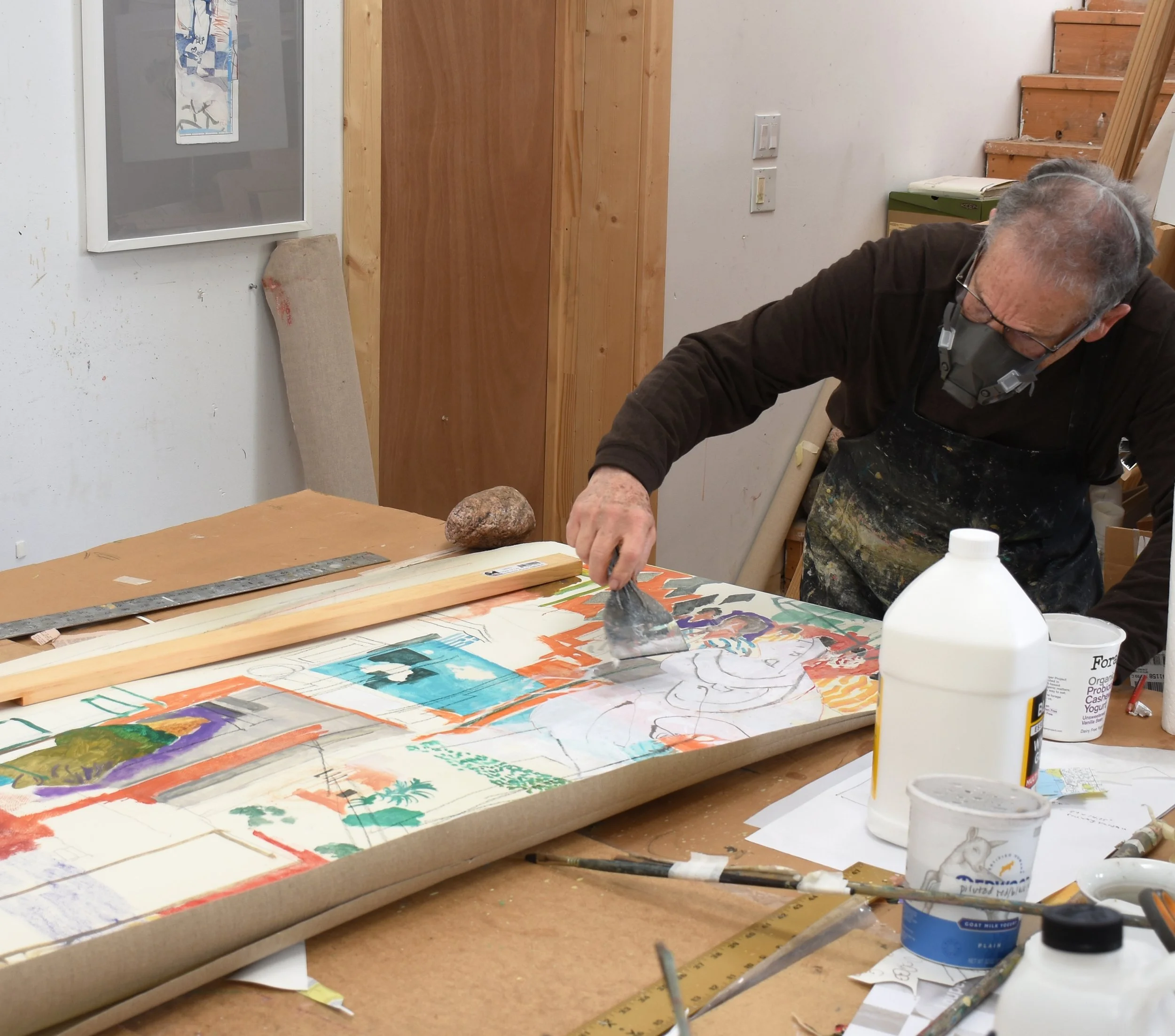 i’m wearing a mask to filter our fumes from the white glue