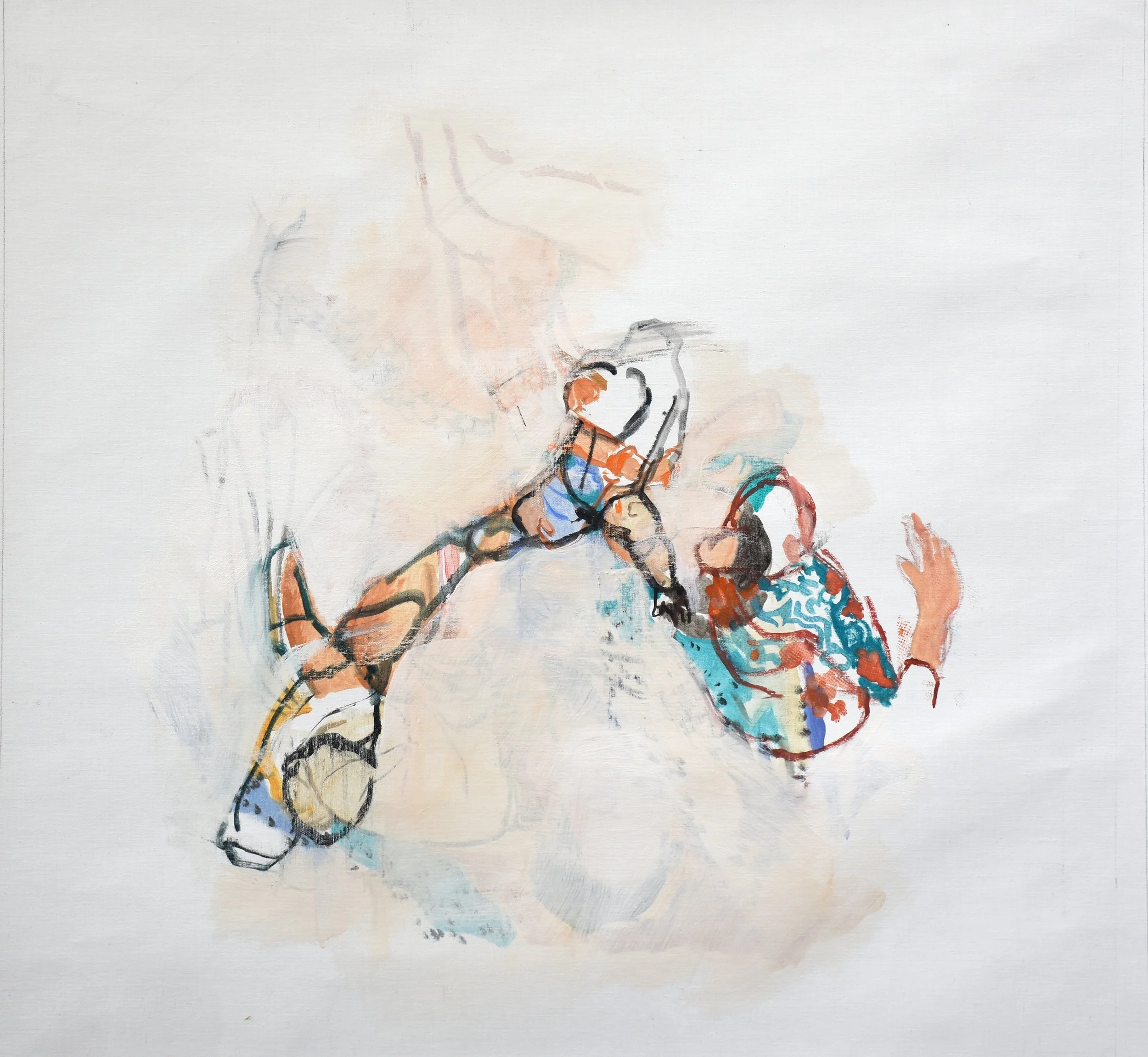 so i scraped it & painted over it with off white. then i introduced a new figure, which was inspired by the views from above of skoufa street in athens, shot from a balcony during my solo exhibition at skoufa gallery.