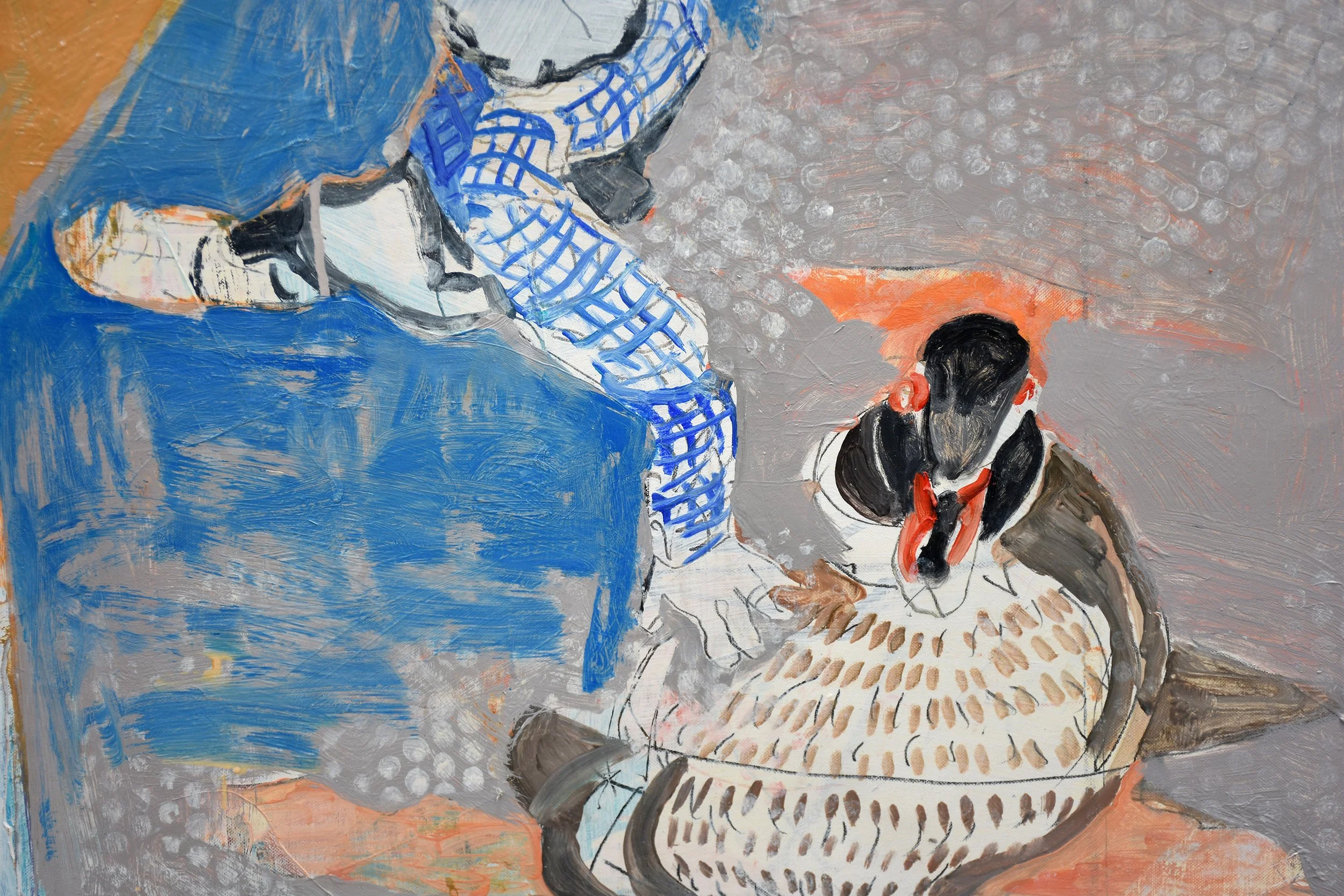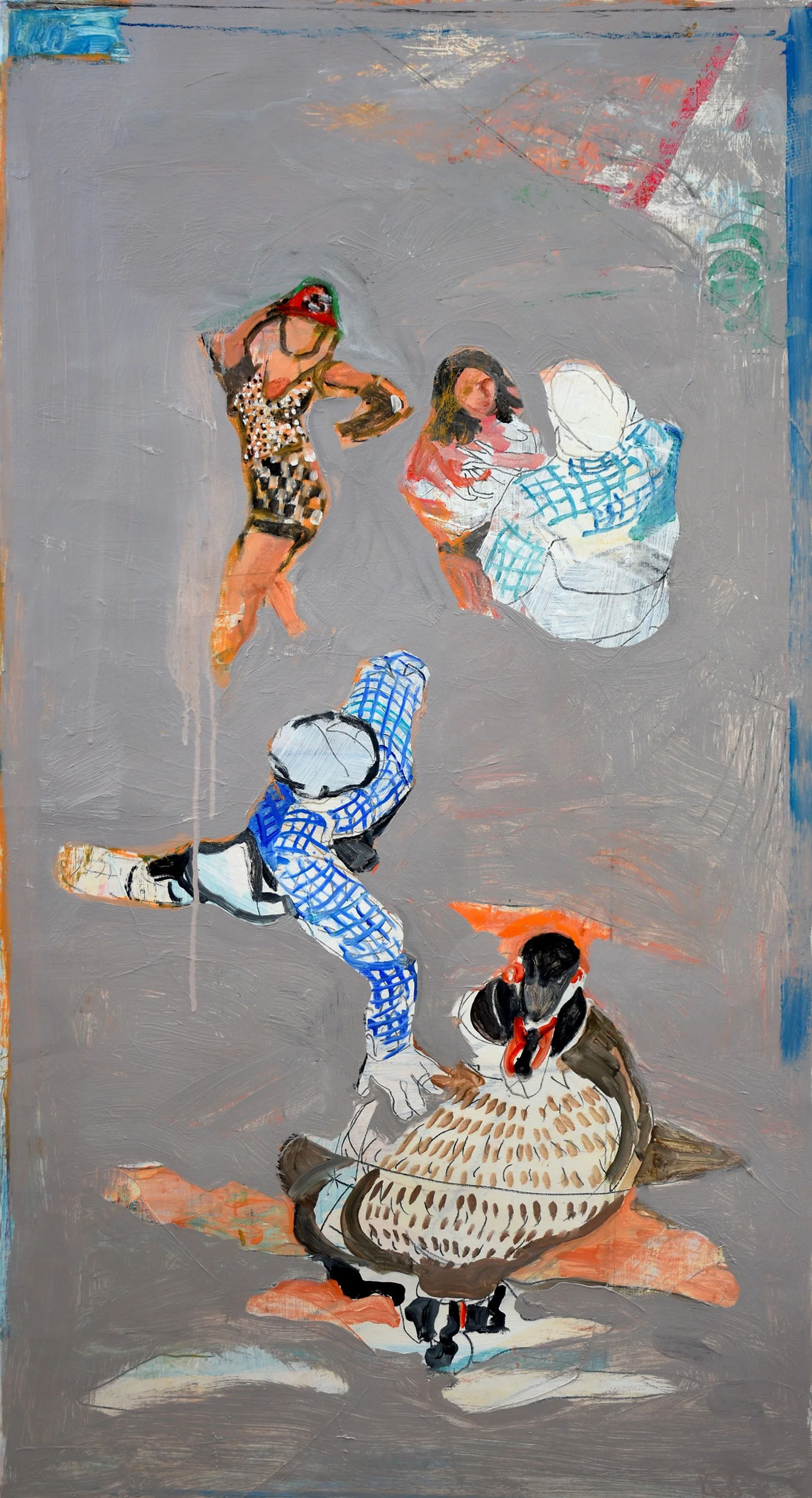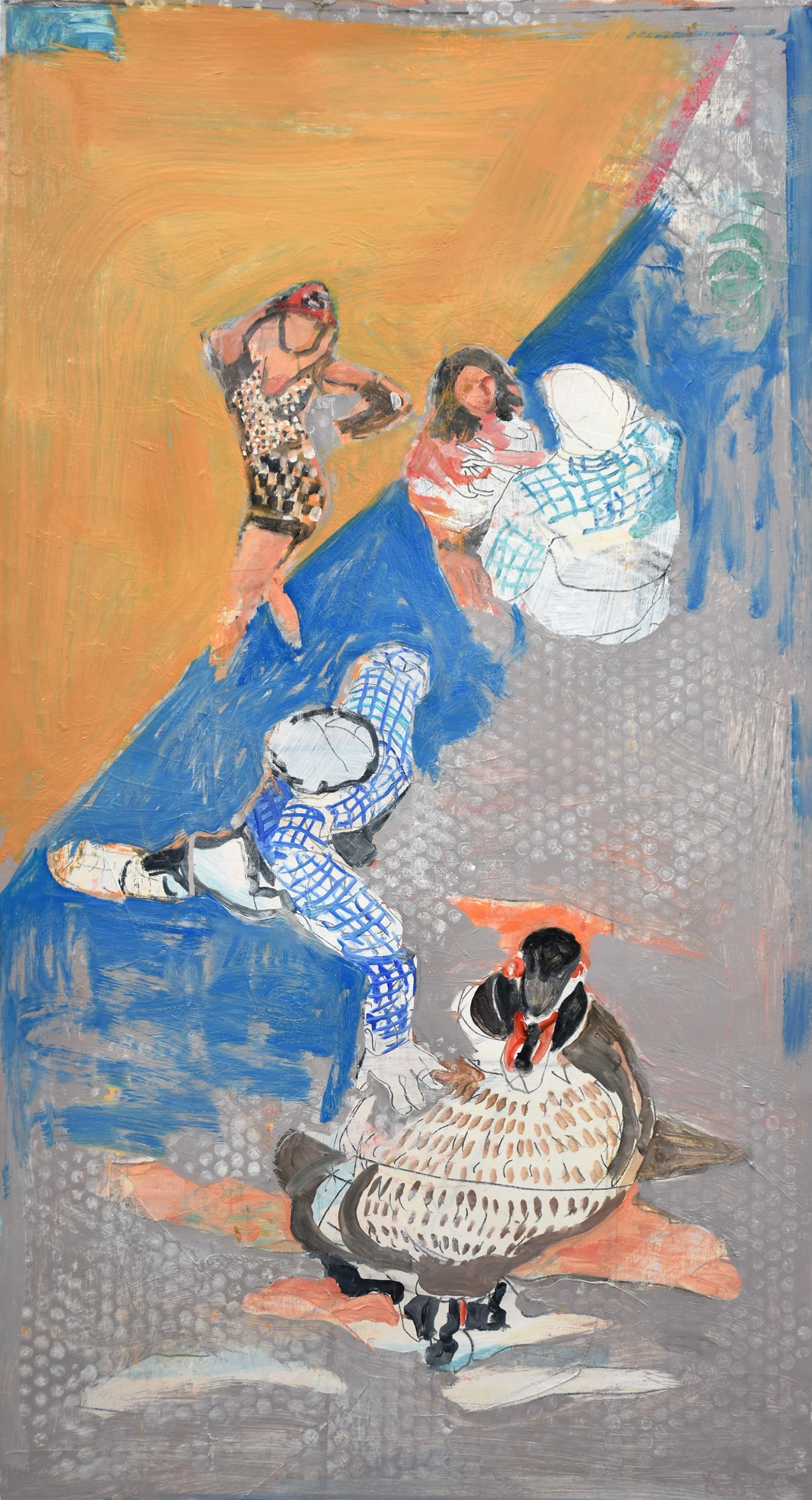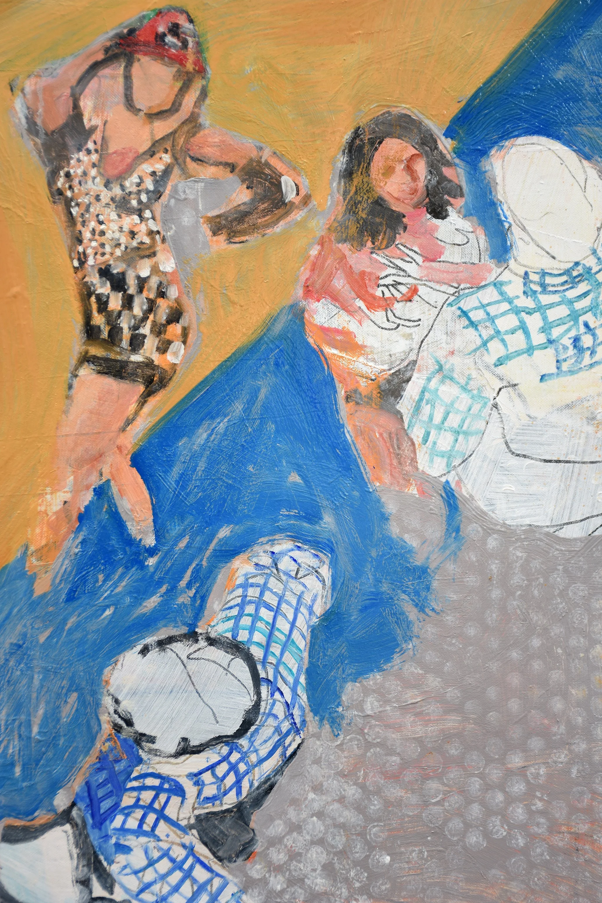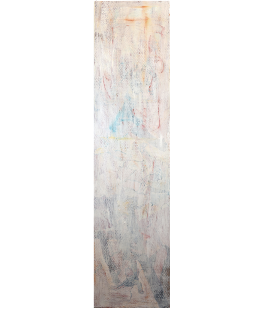 1:58 PM: i had thought hu 1 was resolved, but not so fast tarlow! i started finding all that grey a bit boring. so first i went over the entire paiting with bubble wrap tinted with white oil paint. then i scraped into that, removing most but not all of it. then i introduced a triangle of yellow ochre next to an adjacent area of blue, which is where it’s at now. certainly more visually interesting than that grey.