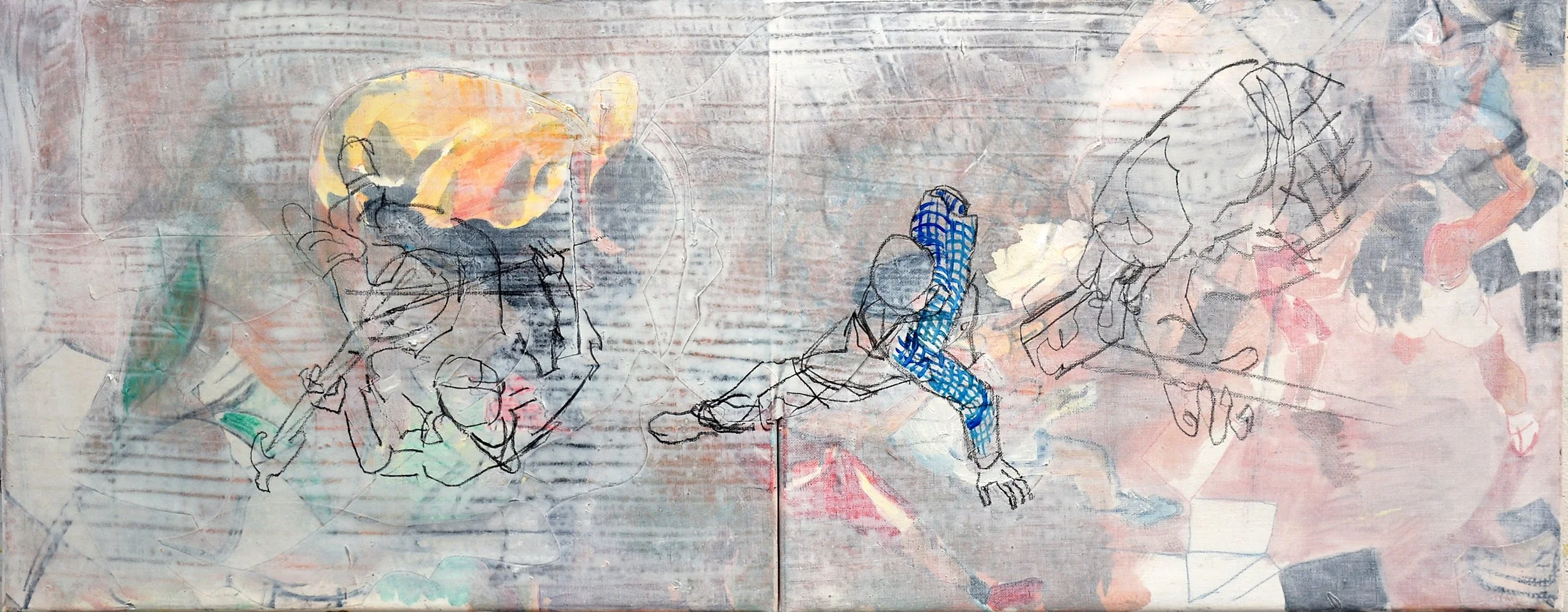 i also made some progress on jazz 19, a new painting on top of an old one, on two 16x20”joined canvases.