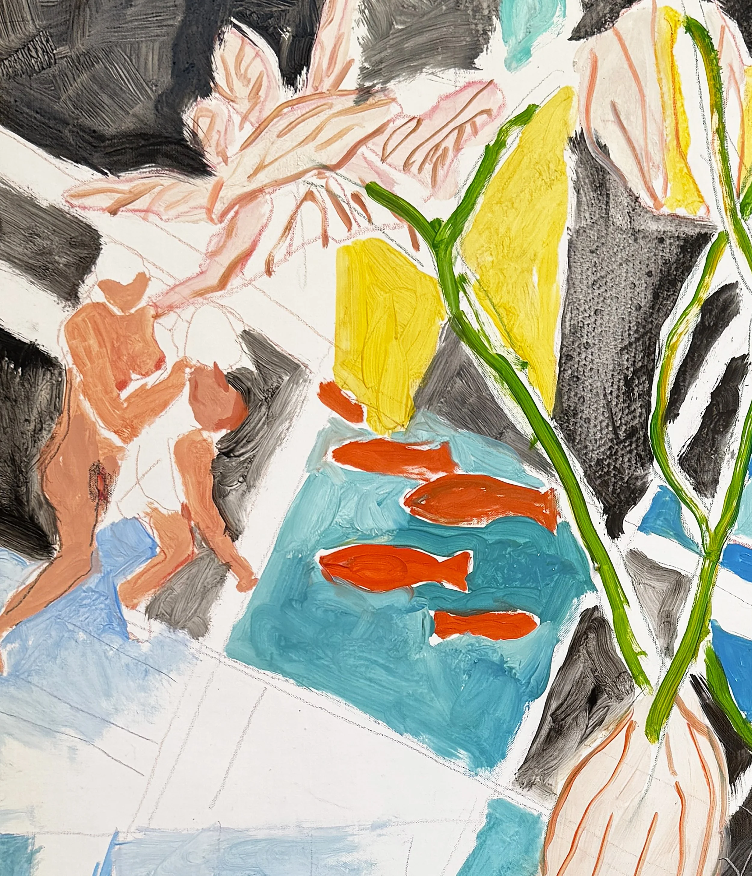 fish wish, 27x28” oil on portrait linen, as she looked at 9am this morning