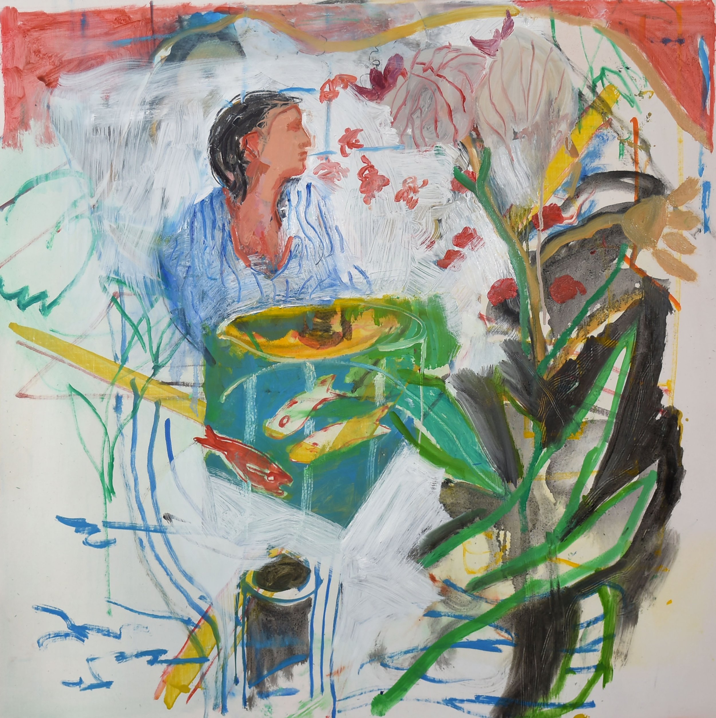 the black on the right pops just enough; the figure works way better with the striped shirt and the goldfish gain with the bottom of their bowl at right angles. like, how could a fish bowl have right angles?? well, it’s not a fish bowl, it’s a painting!