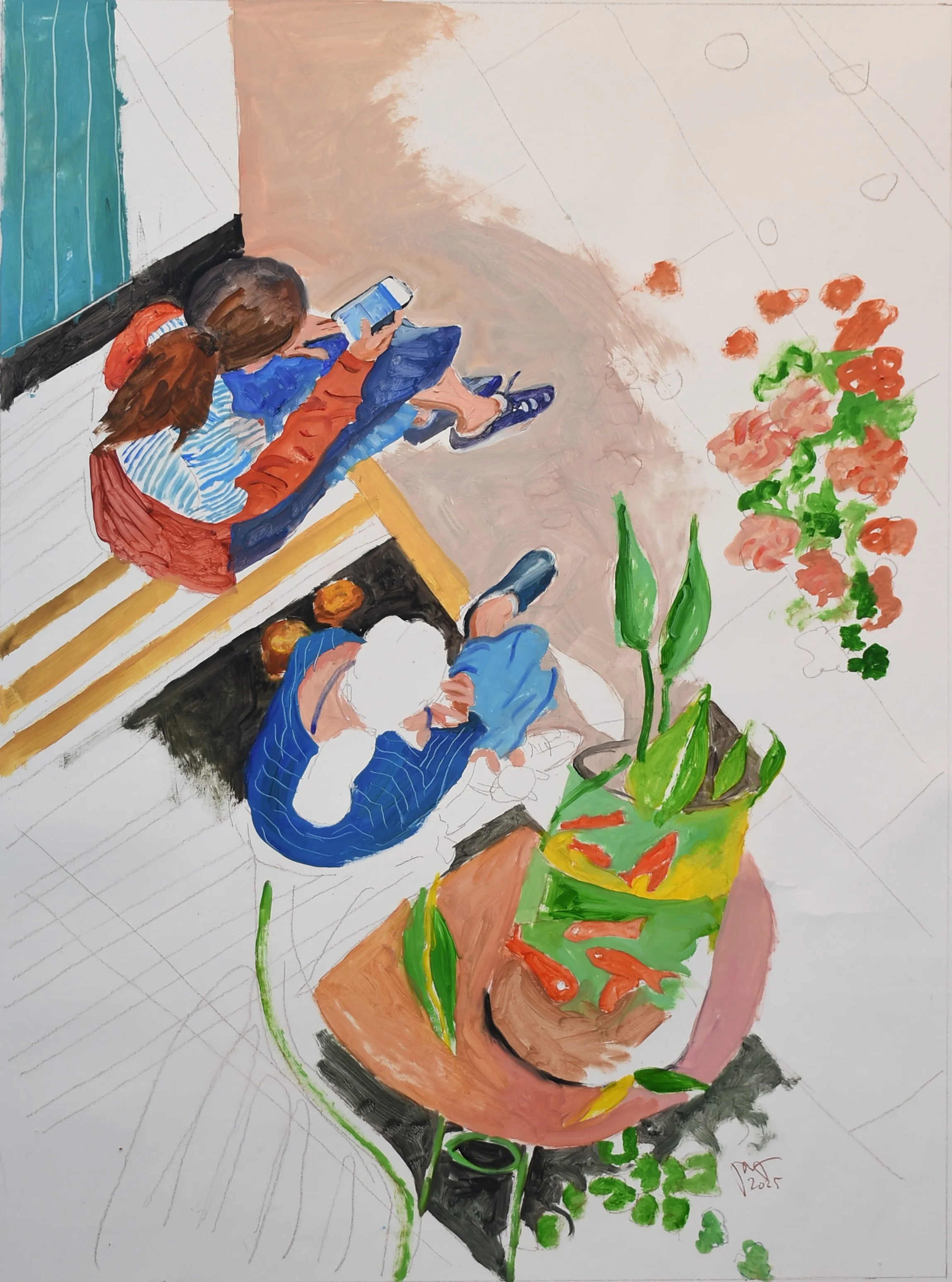 2 girls w/phones & muffins, 35x26” oil on portrait linen, following today’s tweak