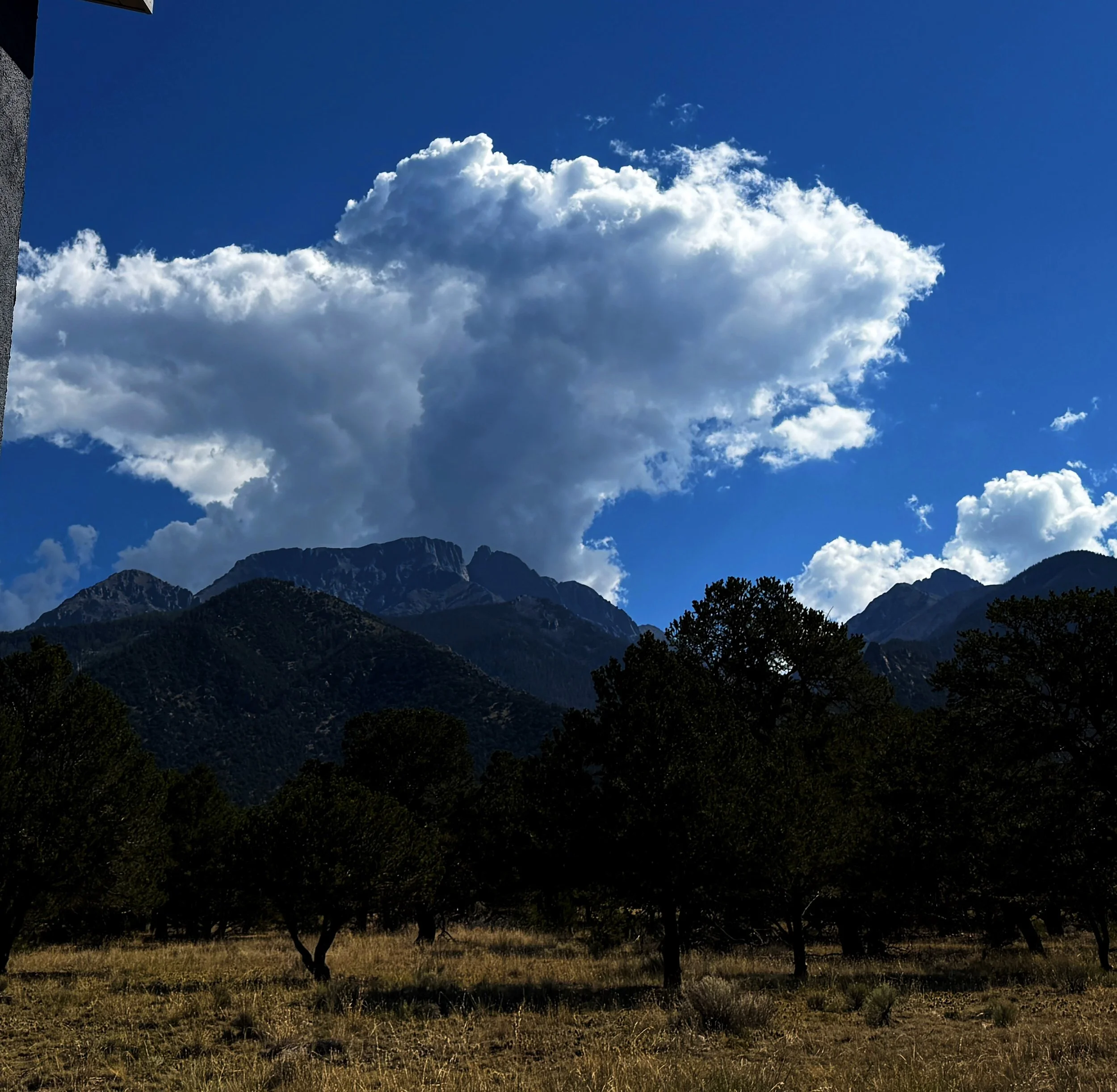 10:45 am: on my way to the studio i photographed these beautiful cloud formations over the sangres. this could be an early sign of the predicted afternoon thunderstorms.