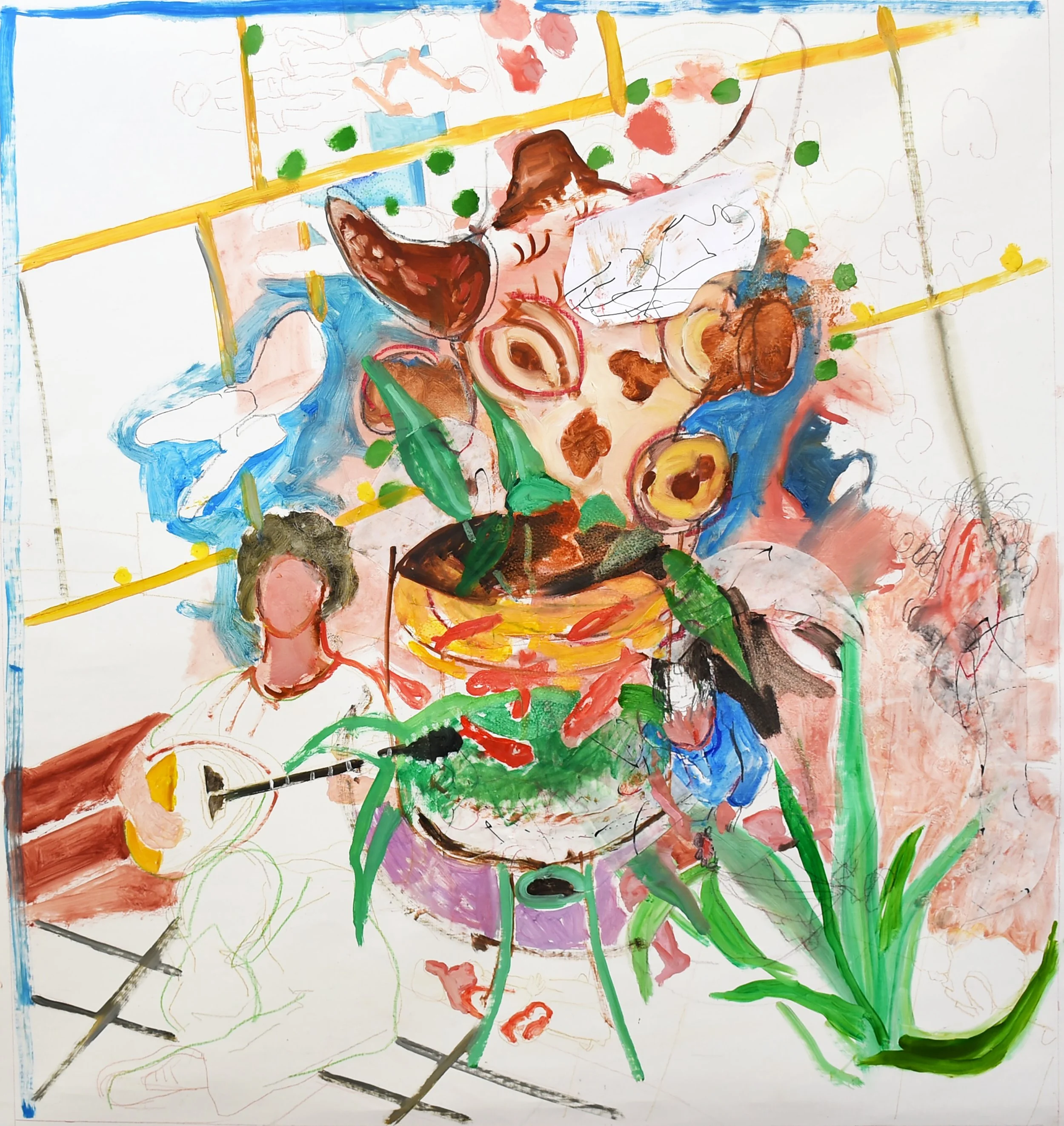 2:02 PM: today i worked on baca#2, for which i had made the drawing yesterday. it’s a bit too busy, so i’ll sit with it and see how i feel about it in the morning.