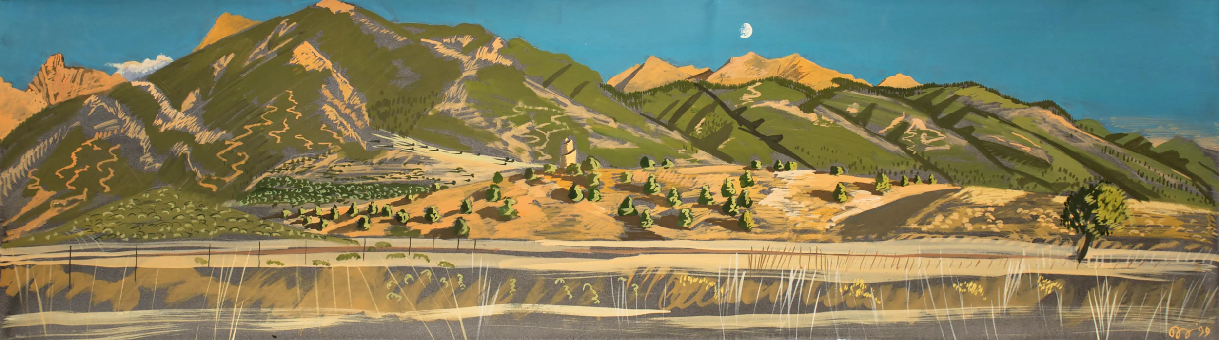 this gouache on paper was painted in 1999. i drove to the place with the best view and made the painting in my car so that it would have the freshness and immediacy i wanted.