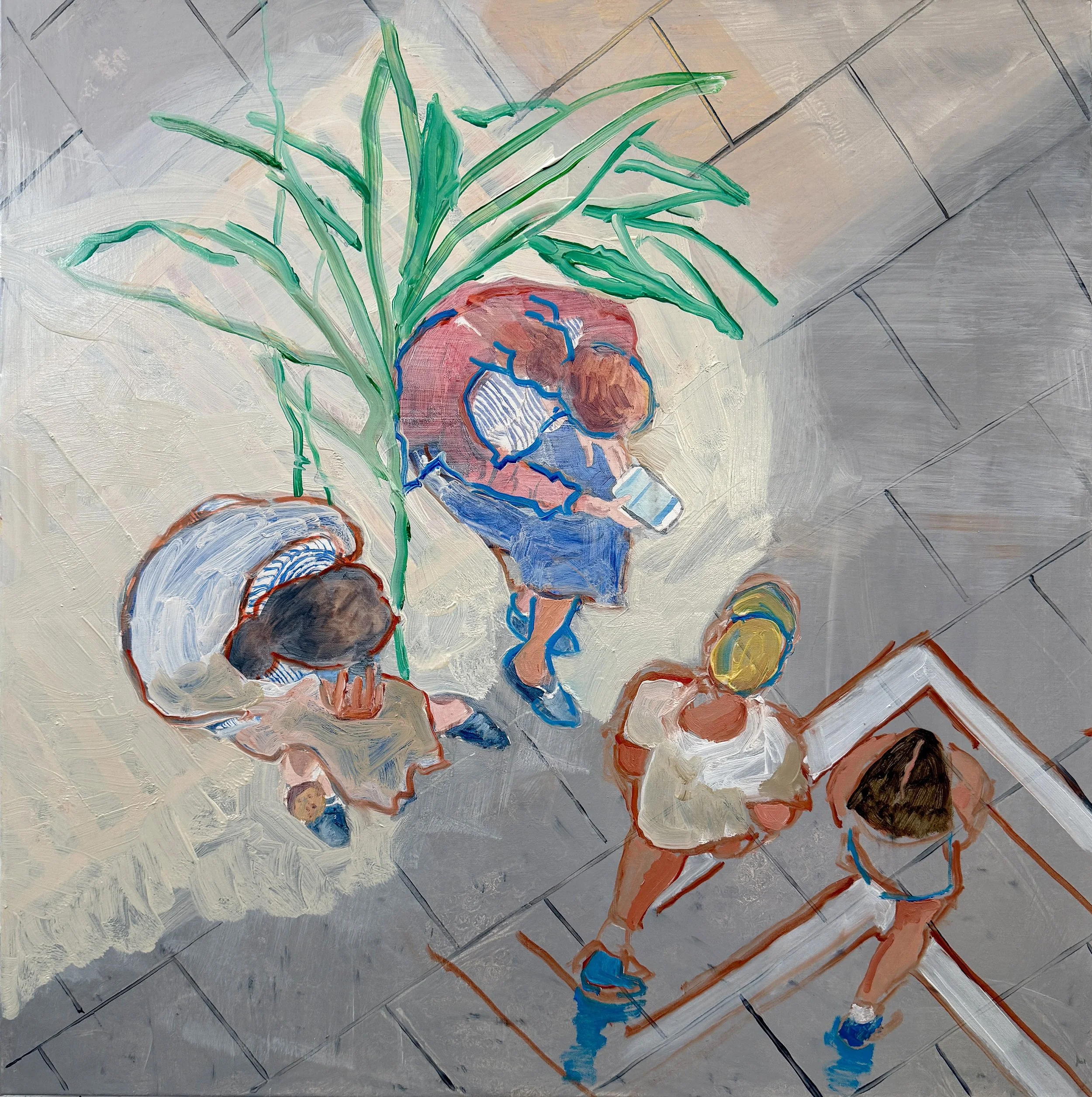 girlfriends, 25x25” oil on portrait linen, as she looked at the end of my painting day today.