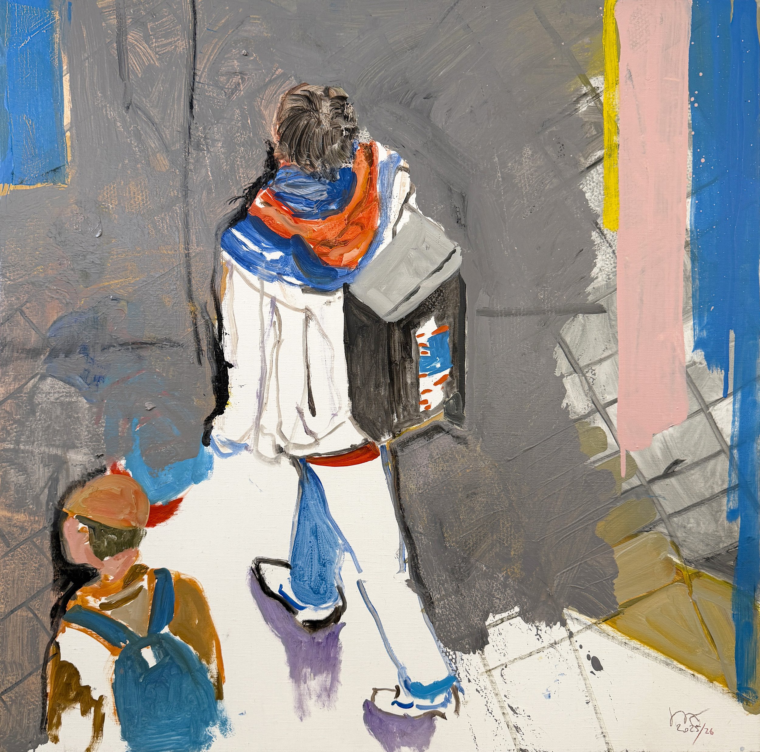 guys walkin 28x28” oil on portrait linen, following todays modifications