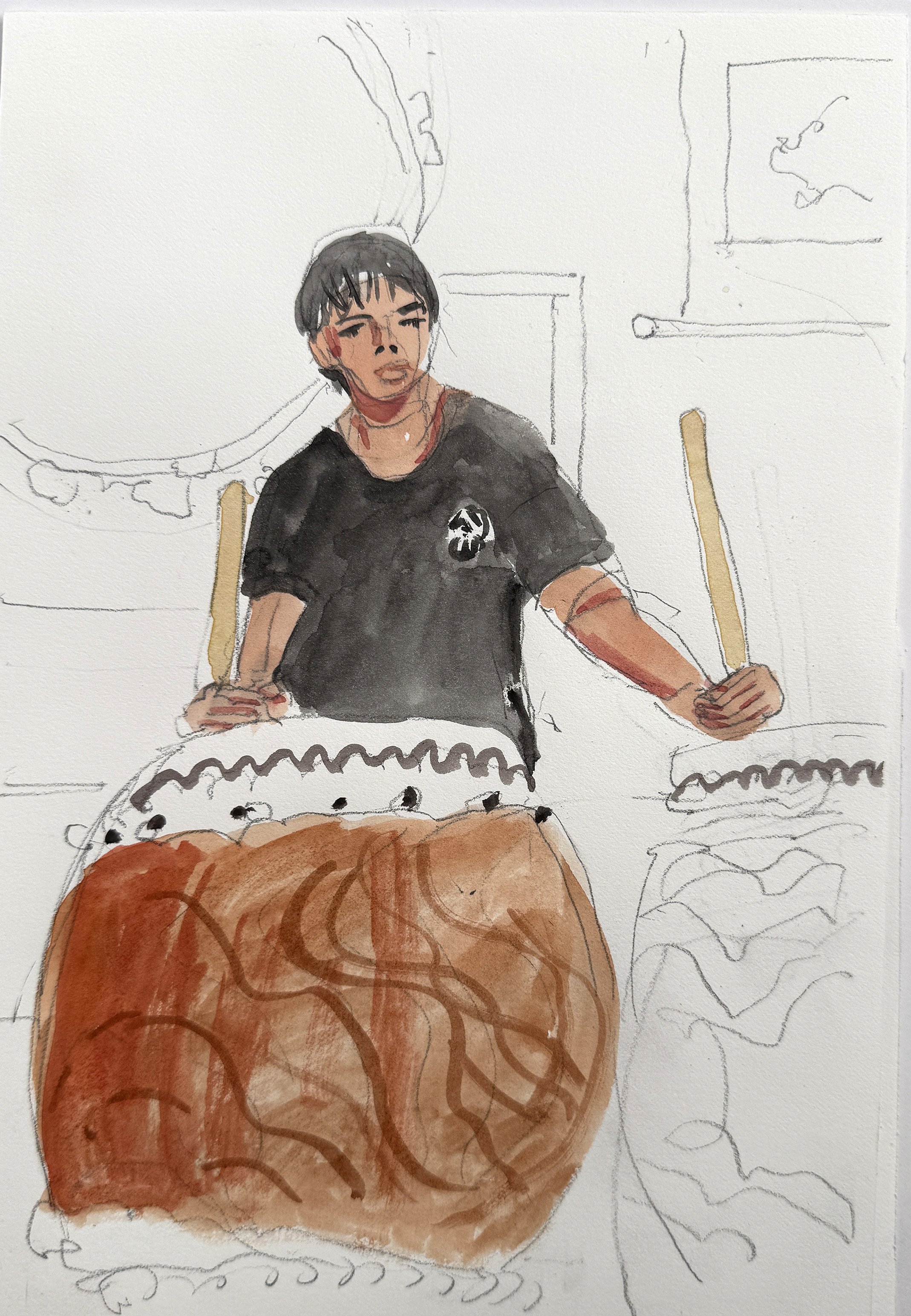 taiko 1 11 1/2 x 7 1/2” , watercolor on day 1