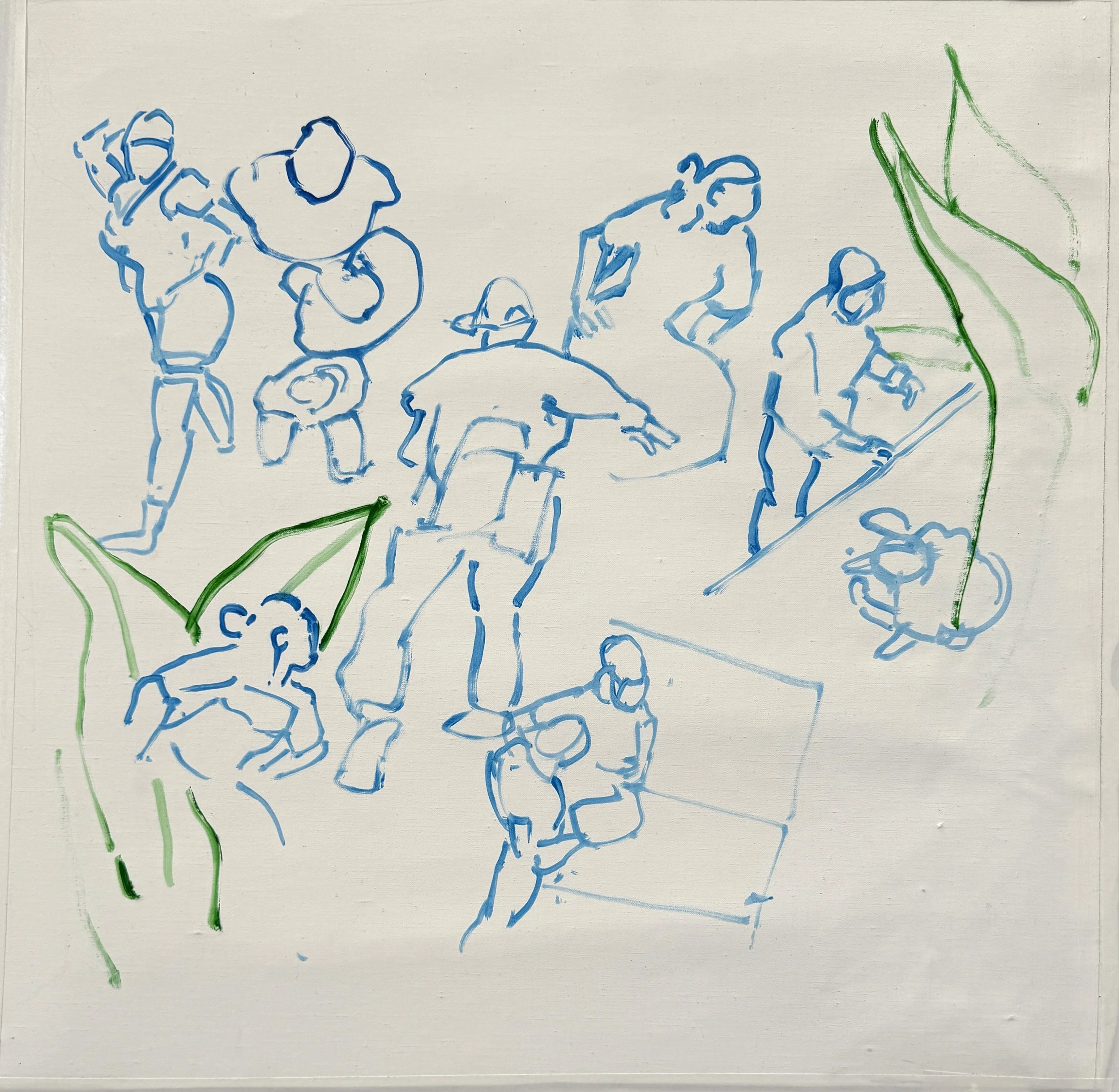 4:25 PM: i did a studio cleanup, so i got a late start. this is stage one of figures in motion, 18x18”